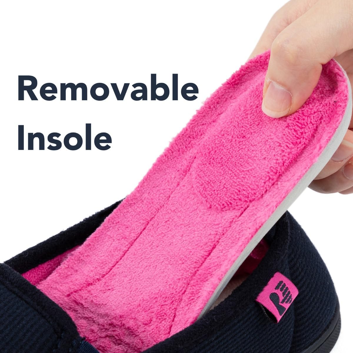 • Treat your tired feet to these supremely soft and cozy loafer slippers, featuring removable insoles, dual elastic gores, and RockDove's signature two-tone colors.
