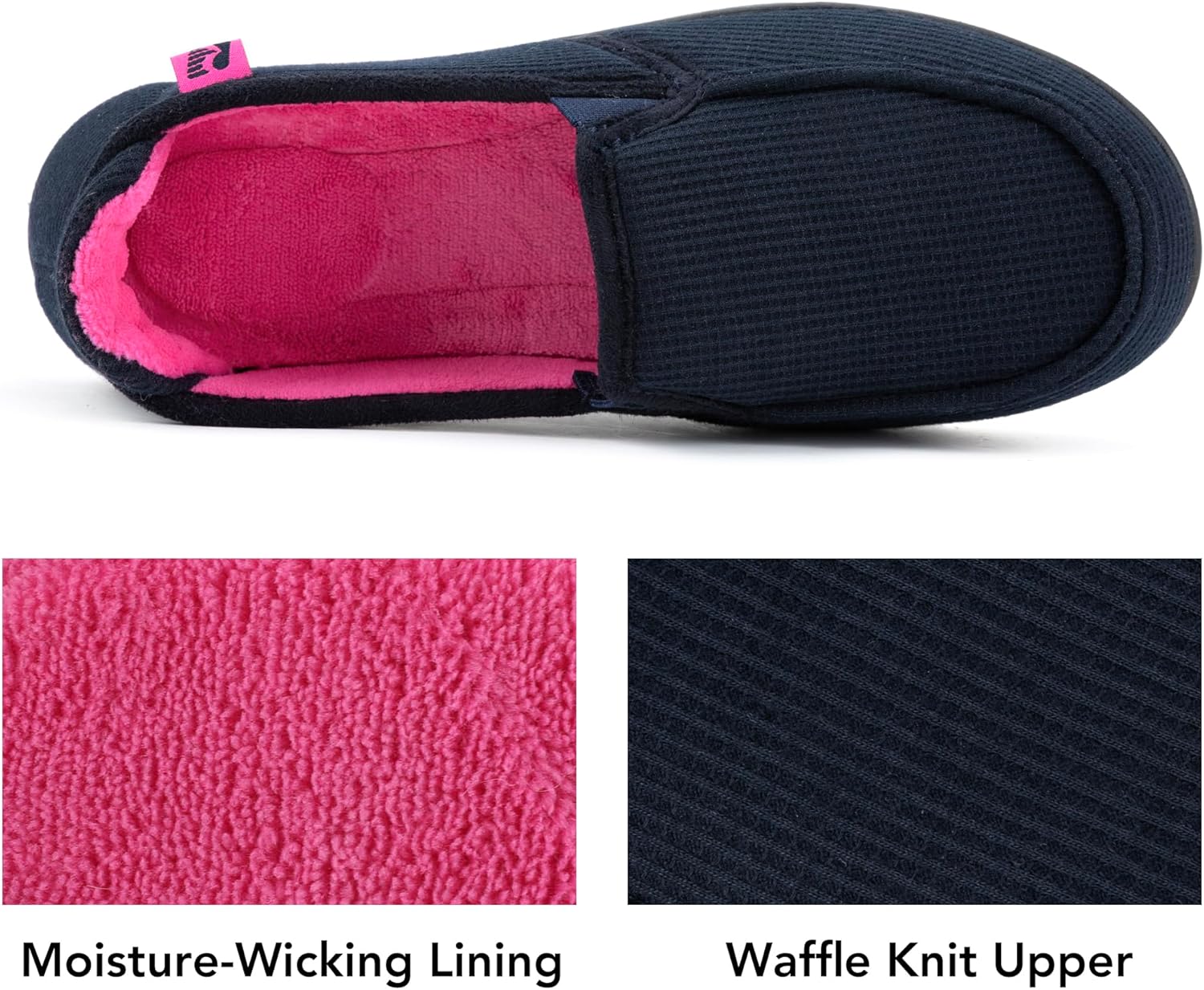 • Waffle-knit uppers help your feet breathe while cradling them in comfort; hooded back serves both as extra cushioning for your heel and a pull-tab for easy wear.