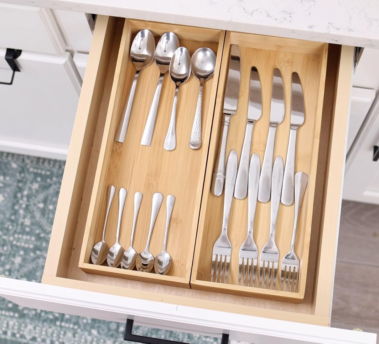 • From CHAOS to ORDER: Do you want something that looks nice and gives versatility for your kitchen/bathroom/office items in drawers? The Fabsome bamboo drawer organizer is the answer. It helps you clean up your junk drawers and put everything in order. There is a place for everything & everything is in its place, making your life a little less stressful.