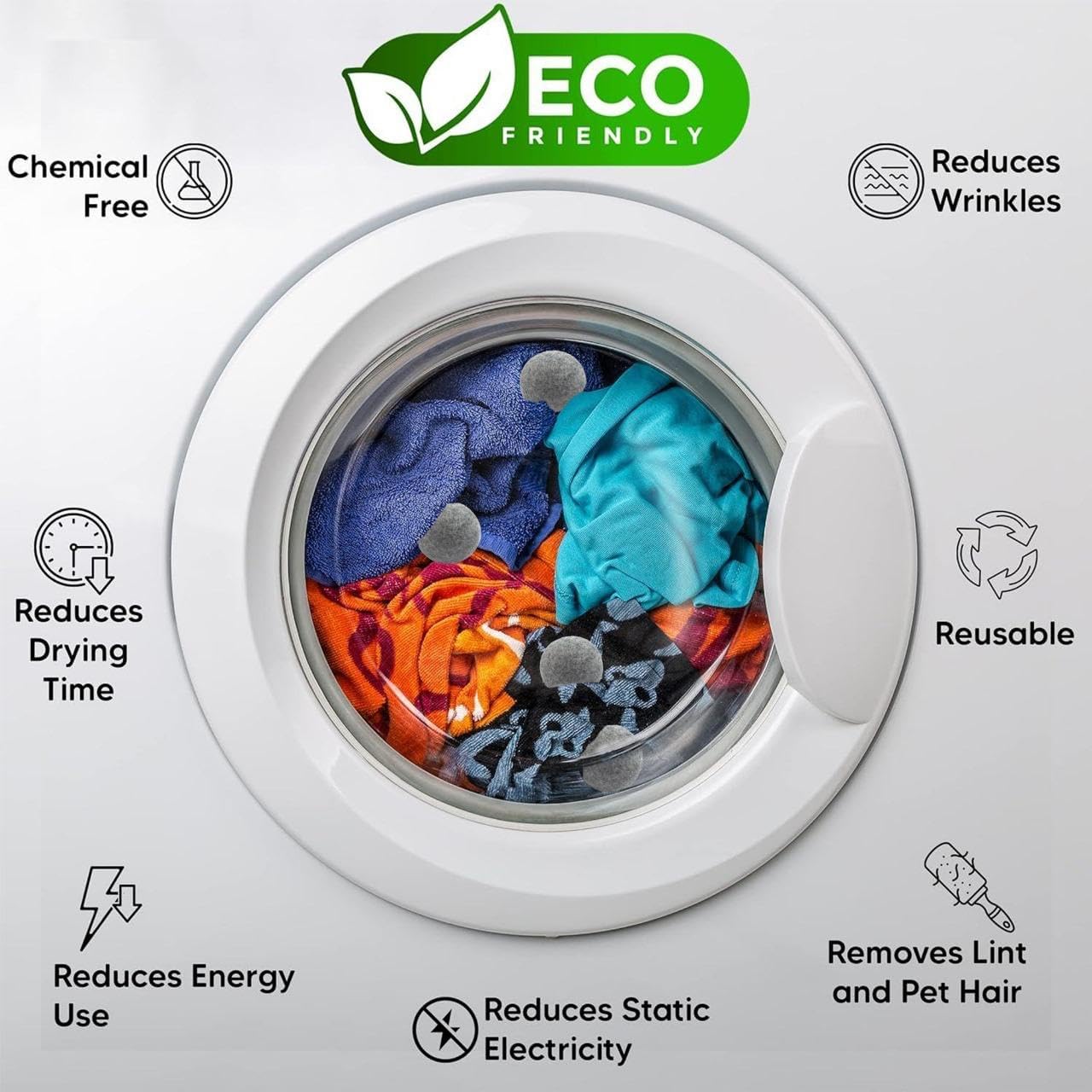 • 🐑 Let Your Dryer Balls Flow: Replace the infused fabric dryer sheets and fabric softeners with this natural alternative that will last more than a thousand dryer loads. These help in better hot air circulation as the dryer balls tumble around in the dryer, lifting and separating the laundry. This will also help in reducing appliance usage and electricity by shortening drying time.