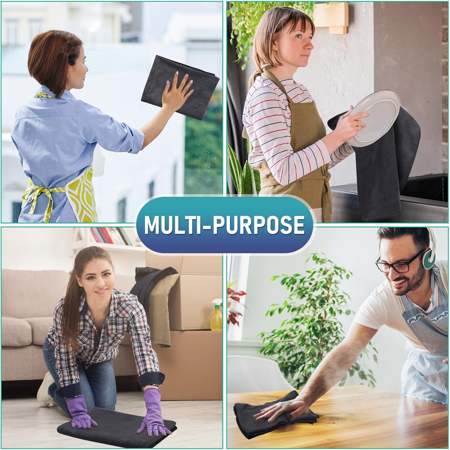 • Multiple Purposes: the microfiber cleaning towels can be regarded as nice wiping supplies for glass, windows, bathtub, mirrors, screens, kitchens, handrail, windowsills, counters, sinks, furniture, automobile and more