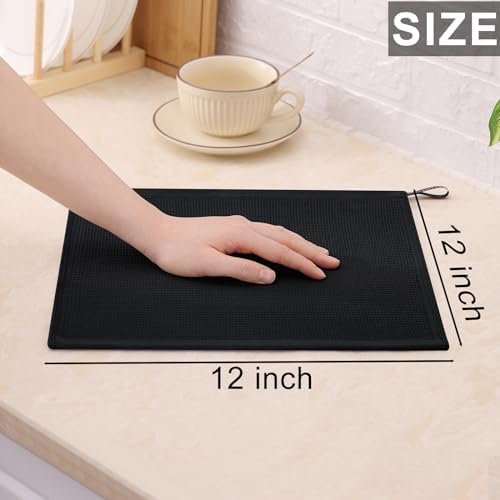 Homaxy 100% Cotton Waffle Weave Dish Cloths - 12 Pack Soft and Absorbent Dish Towels - 12 x 12 Inches Quick Dry Dish Rags - Black