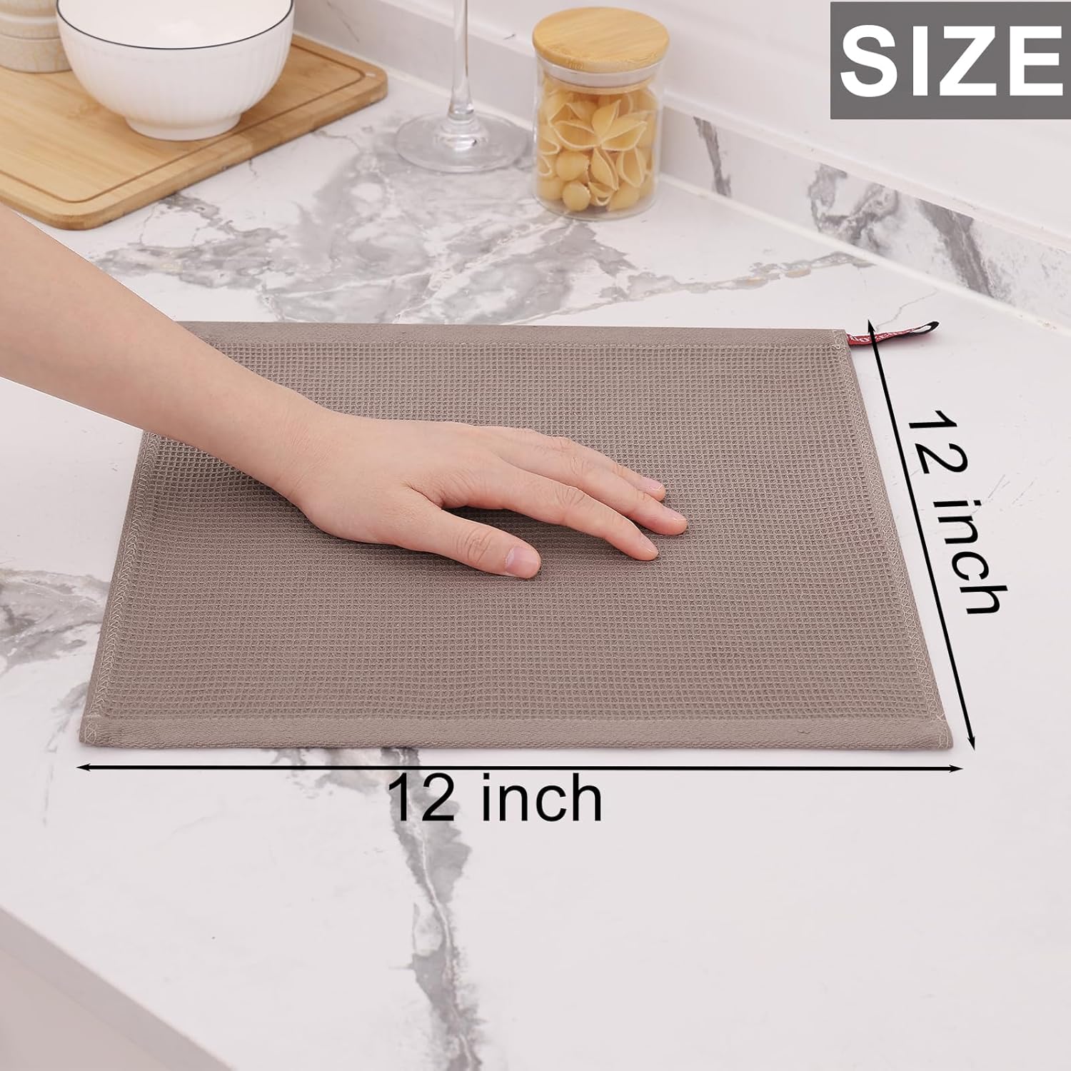 Homaxy 100% Cotton Waffle Weave Dish Cloths - 12 Pack Soft and Absorbent Dish Towels - 12 x 12 Inches Quick Dry Dish Rags - Brown