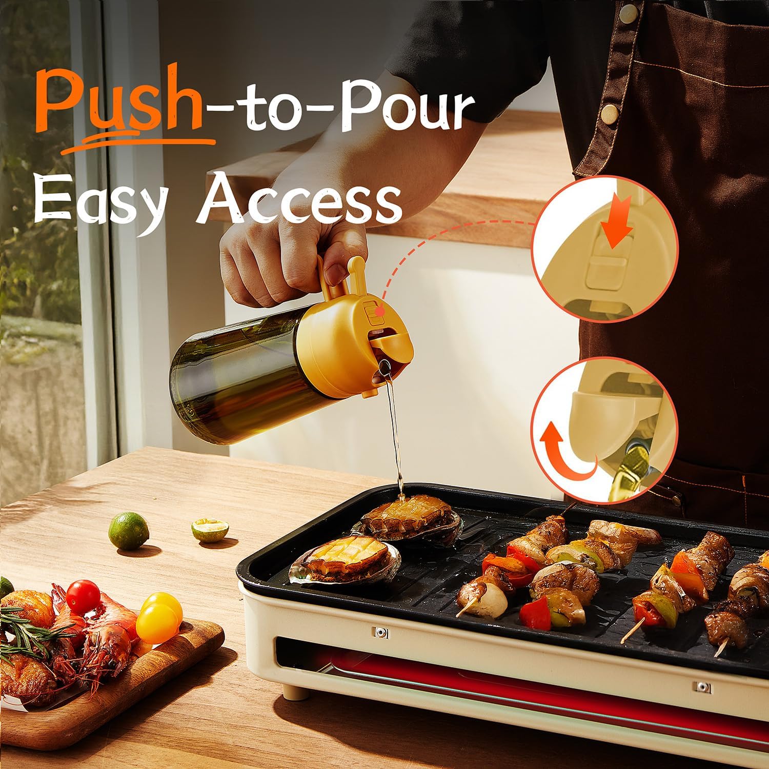 • Innovative Spray Nozzle Design: Delivers precise control—quick presses release a fine mist, while slow presses provide a steady stream. Whether you're preparing meals in the kitchen or barbecuing outdoors, this reliable cooking oil sprayer doubles as one of your must-have grilling accessories