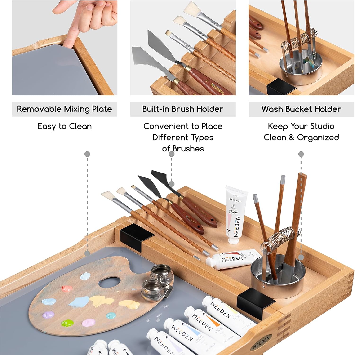 • Multifunctional Design: Come with a brush holder, store different kinds of brushes tidily. Unique round groove for inlaying brush washer, optimize creation space perfectly. Many functions in one, such as a practical and utility cart, deserve to have!