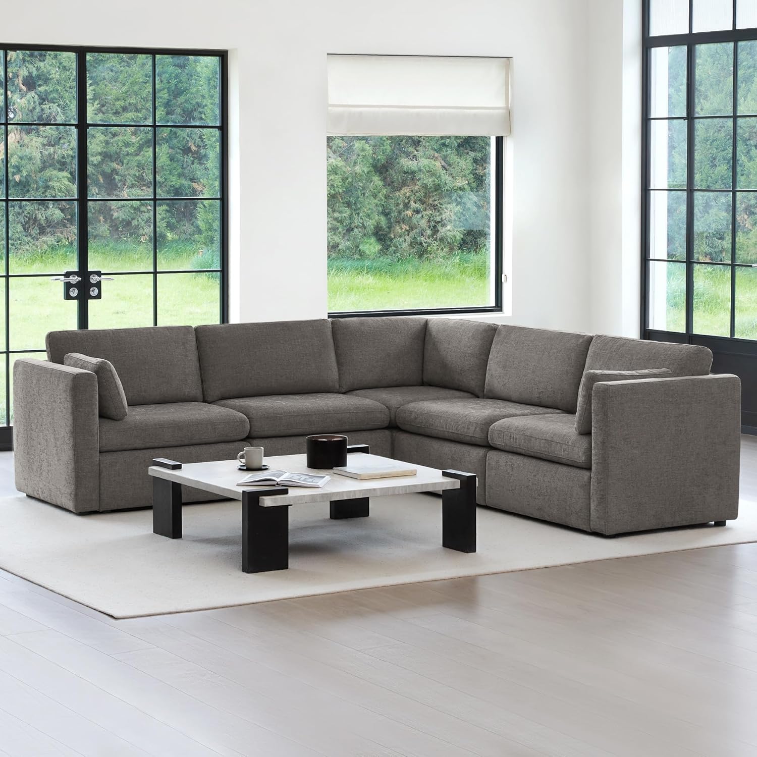 CHITA Oversized Modular Sectional Fabric Sofa Set, FSC Certified Extra Large 5 Seat V Shaped Corner Sectional Cloud Couch for Living Room, 106 inch Width, 4 Seat and 1 Middle Corner, Grey