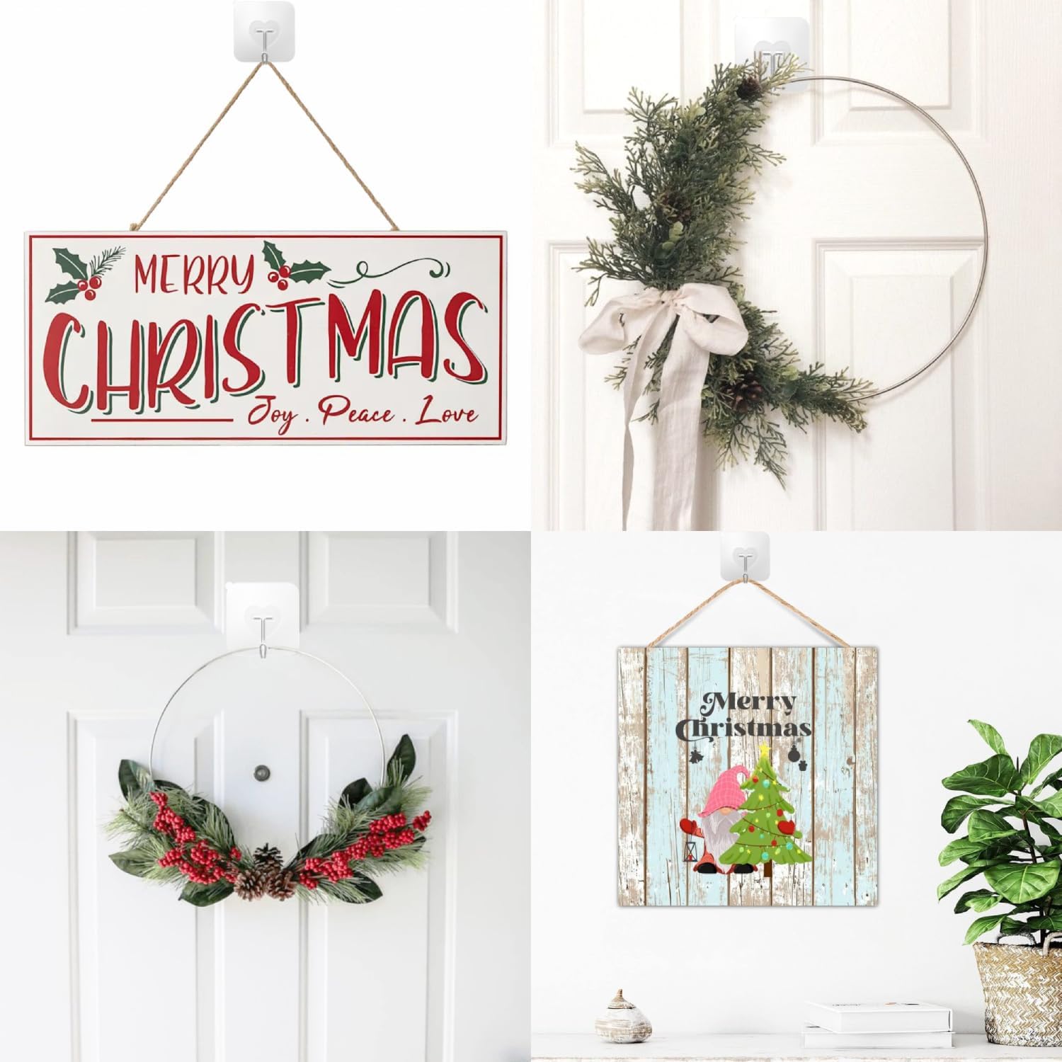 • These versatile adhesive wall hanging hooks heavy duty great for hanging coats, towels, robes, mops, brooms, jackets, hats, bags, umbrella, scarves, keys, purses, plants, kitchen utensils, loofah, brush, soup ladles, spatula etc. Set of 40 small plastic hooks adhesive. Size: 2.36" x 2.36".