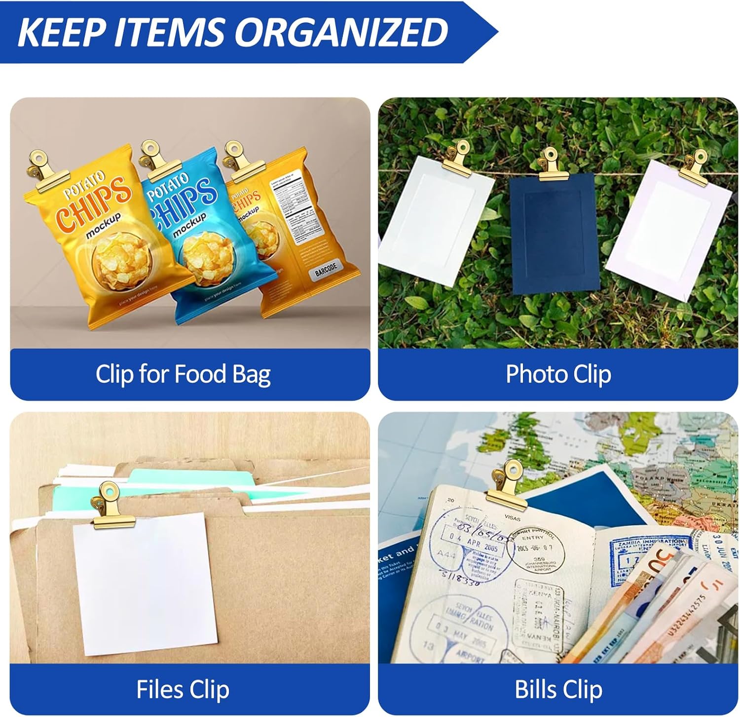 • Strong Grip & Tightness: Bulldog binder paper clips built-in high-elasticity spring to ensure a solid grip. Prevents your important documents from falling out. Protects your food from moisture and spoilage