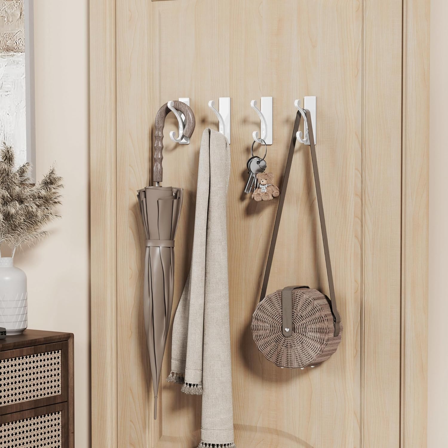 Adhesive Wall Hook for Towel/Coat - Extra Sticky 10LB Stainless, Stick on Hanger for Bath or Shower, White 8-Pack