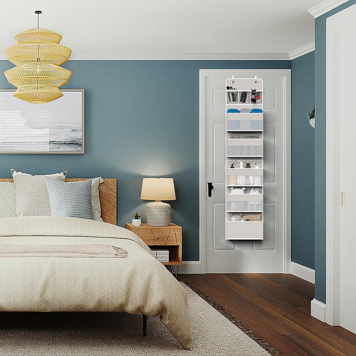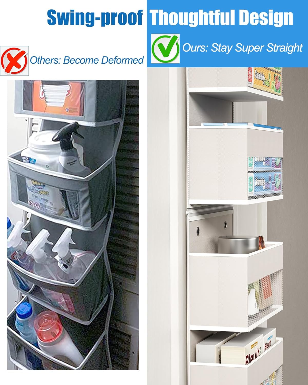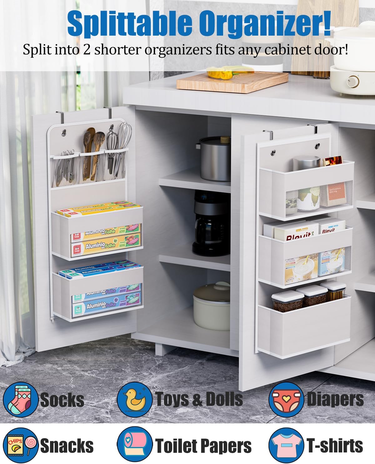 • - For All Space: You can install this over door organizer as a whole long organizer or split it into 2 short storage for bedroom, closet, baby room, bathroom, kitchen, etc