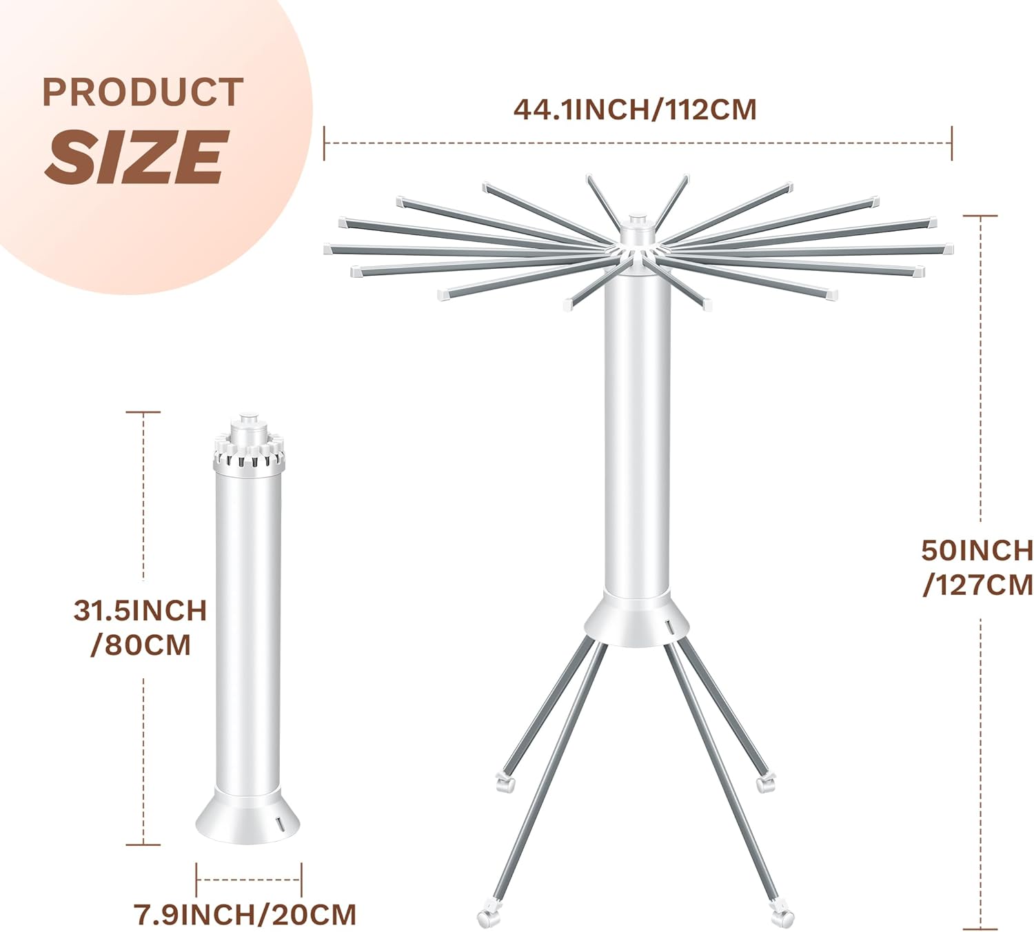 • 【4-Leg Support and 360° Rotatable Arms】: This foldable clothes drying rack features 4-legged support and protective hanger tails, making it more stable than a tripod.It can allow for 360° rotation to efficiently air dry up to 27 pieces of clothing. It's perfect for garments of all sizes and shapes.