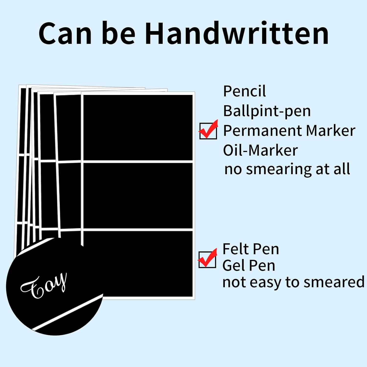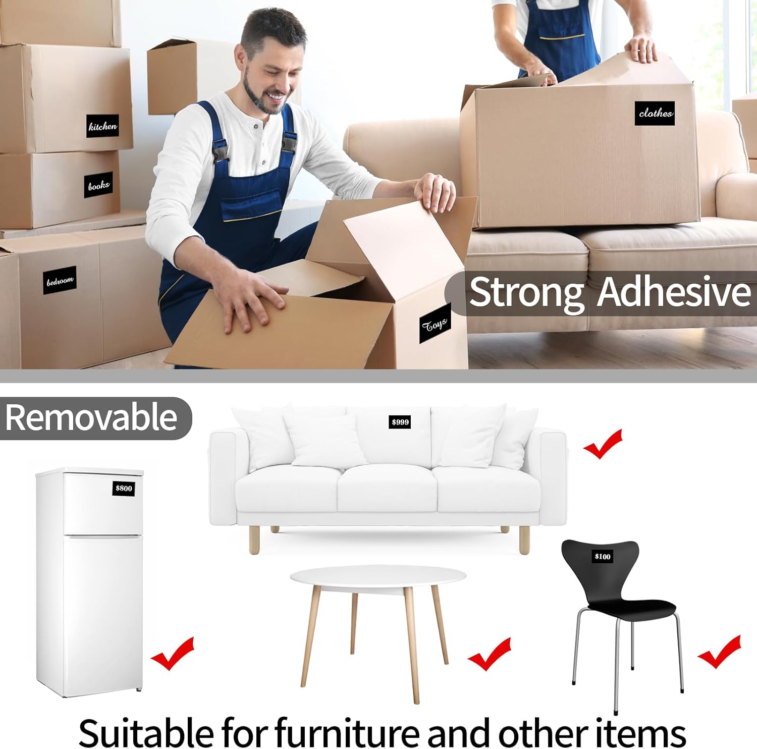 • Easy to Use: Simply cut the Large Labels For Storage Bins to the desired size and apply them to a pure white blank label for easy identification. Peel off the backing and stick them where needed – they'll adhere well to smooth surfaces in storage containers