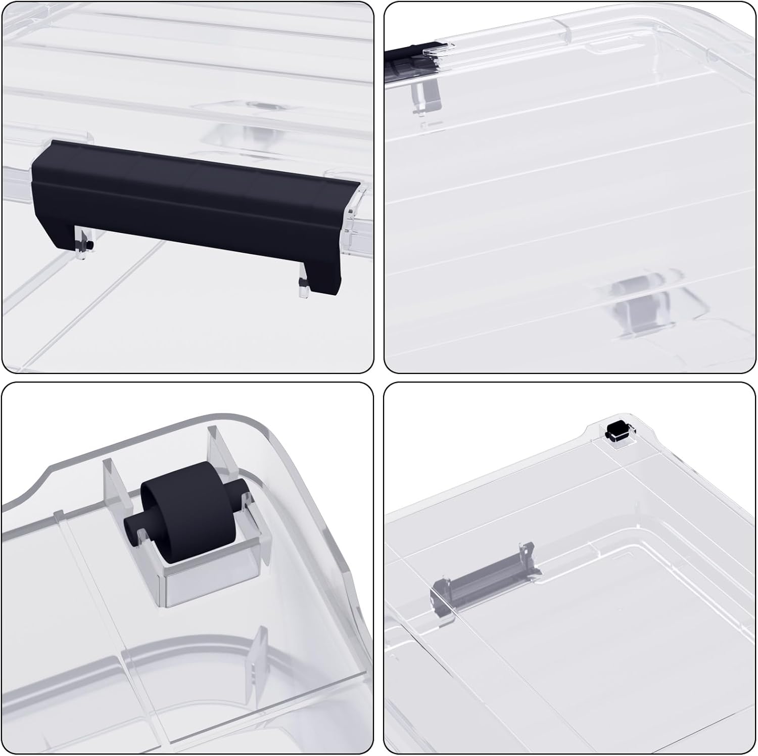 4-Pack 25L Plastic Under Bed Storage Organizer Bin Container with Latch Lids and Wheels, Clothes Storage Box Rolling Underbed, Clear