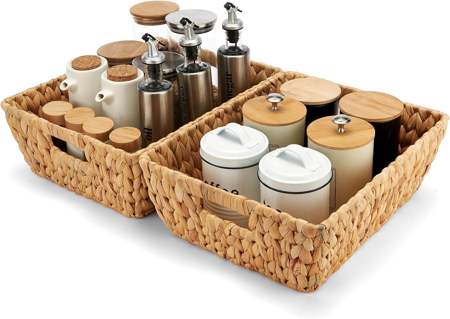 • [NATURAL WATER HYACINTH WICKER BASKETS] The wicker baskets for organizing are made of 100% natural water hyacinth, safe for daily use.