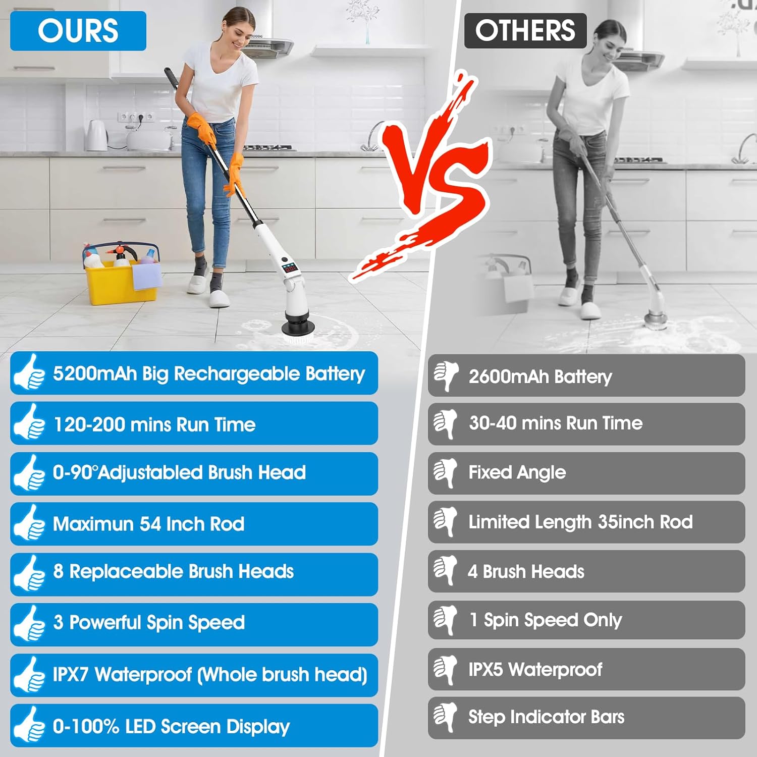• Effortless Cleaning: If you're looking for a reliable and efficient cleaning solution for home, Hdyfix electric spin scrubber is definitely worth considering. Its versatility, long battery life, and powerful cleaning capabilities make it a must-have for simplifying your cleaning routine, does the hard part for you and no longer leaves you with a tired back or sore knees, wrists and arms, you'll find it way less daunting to clean. This shower cleaner brush electric will be the best investment you make