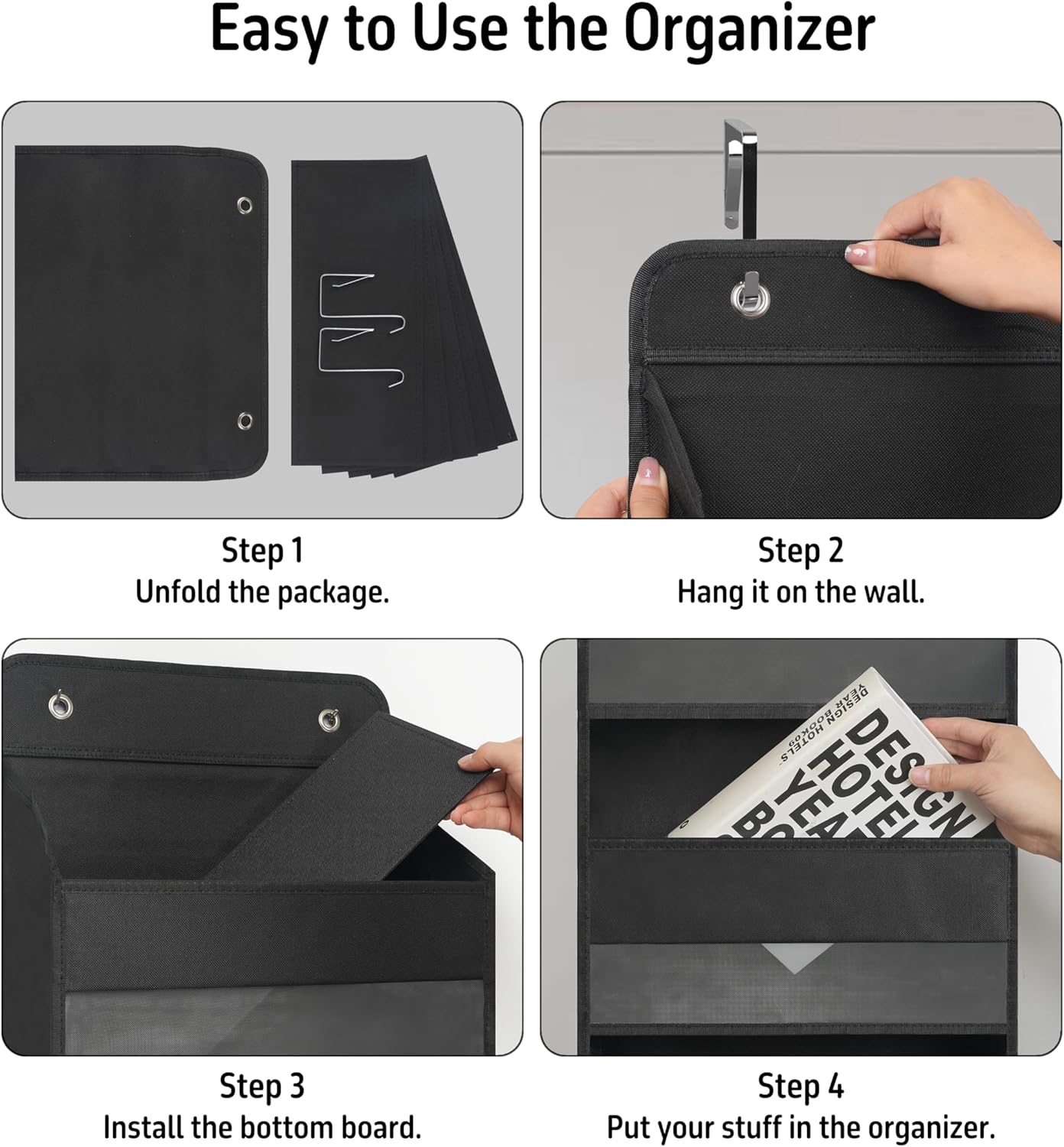 • Durable & Eco-Friendly Construction: Made from high-quality, non-toxic, odor-free fabric, the organizer includes sturdy cardboard inserts to maintain pocket shape and a reinforced frame for added support. It's designed to hold heavy items without sagging, ensuring long-lasting durability.