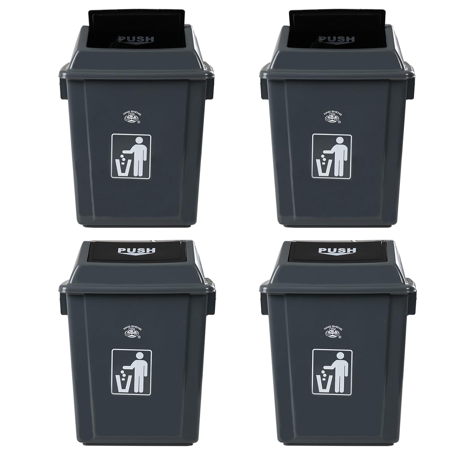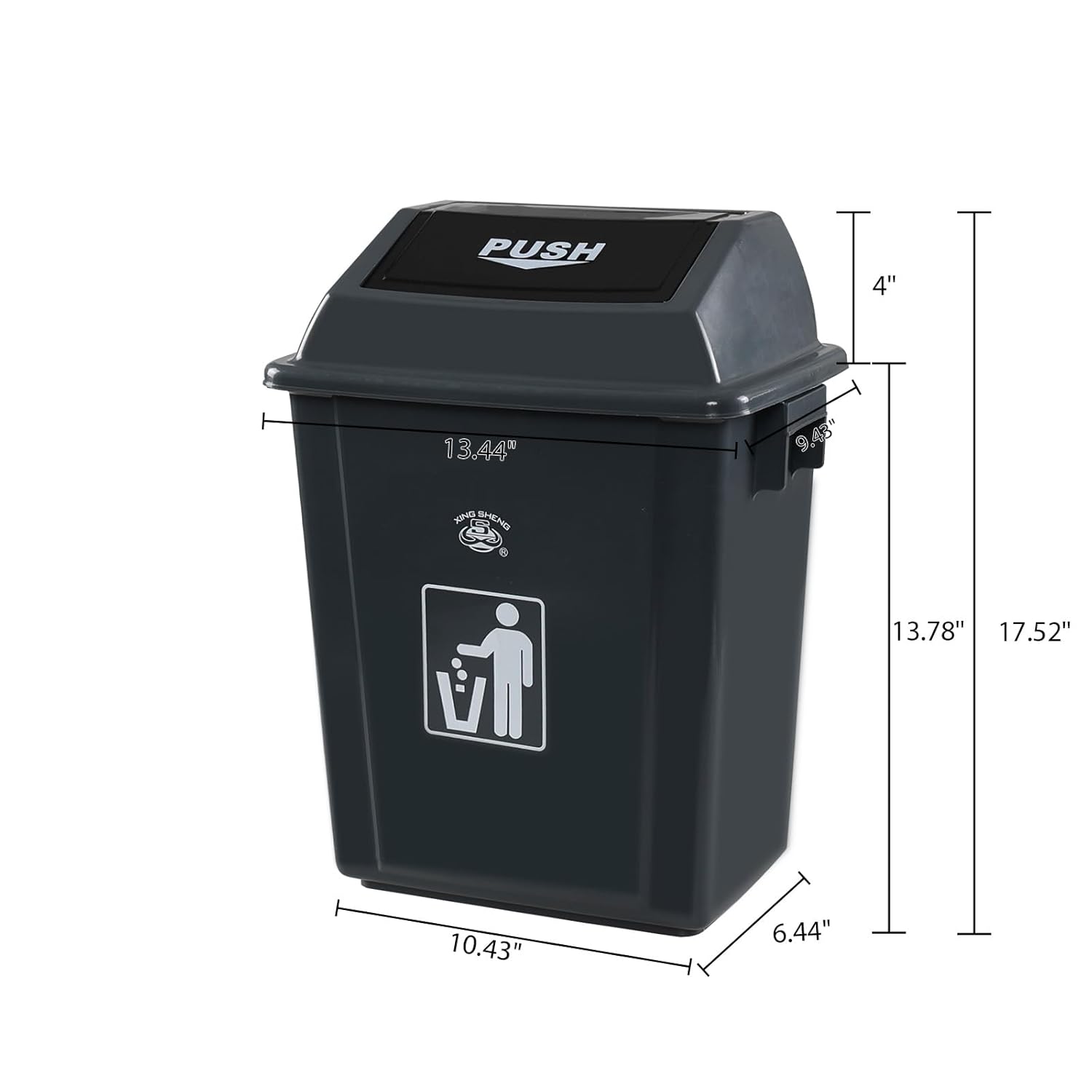6 Gallon Plastic Swing Top TrashBin/Garbage Can, Lidded Wastebasket Trash Can for Kitchen, Garage, Office, Grey (4 Pack)