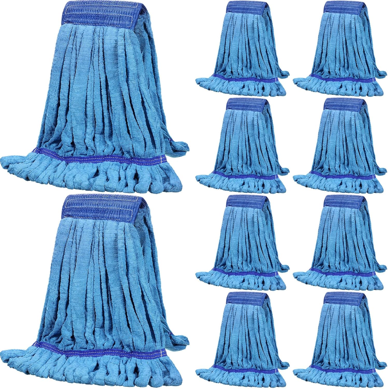 Lallisa 10 Pcs Commercial Mop Head Replacement Tube Microfiber Mop Heads for Floor Cleaning Industrial Mop Heads Looped End Wet Mop Head Refill for Home Commercial Industrial Use (Blue,14 oz)