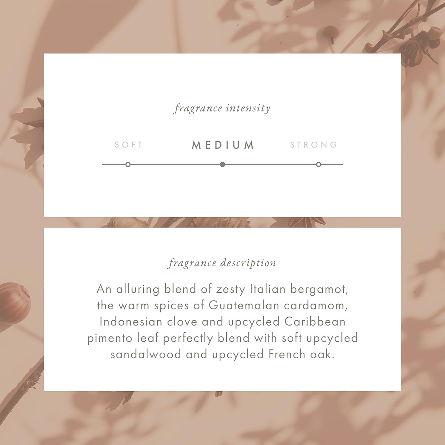 • ECO ALLURE: An alluring blend of zesty Italian bergamot, the warm spices of Guatemalan cardamom, Indonesian clove and upcycled Caribbean pimento leaf perfectly blend with soft upcycled sandalwood and upcycled French oak.
