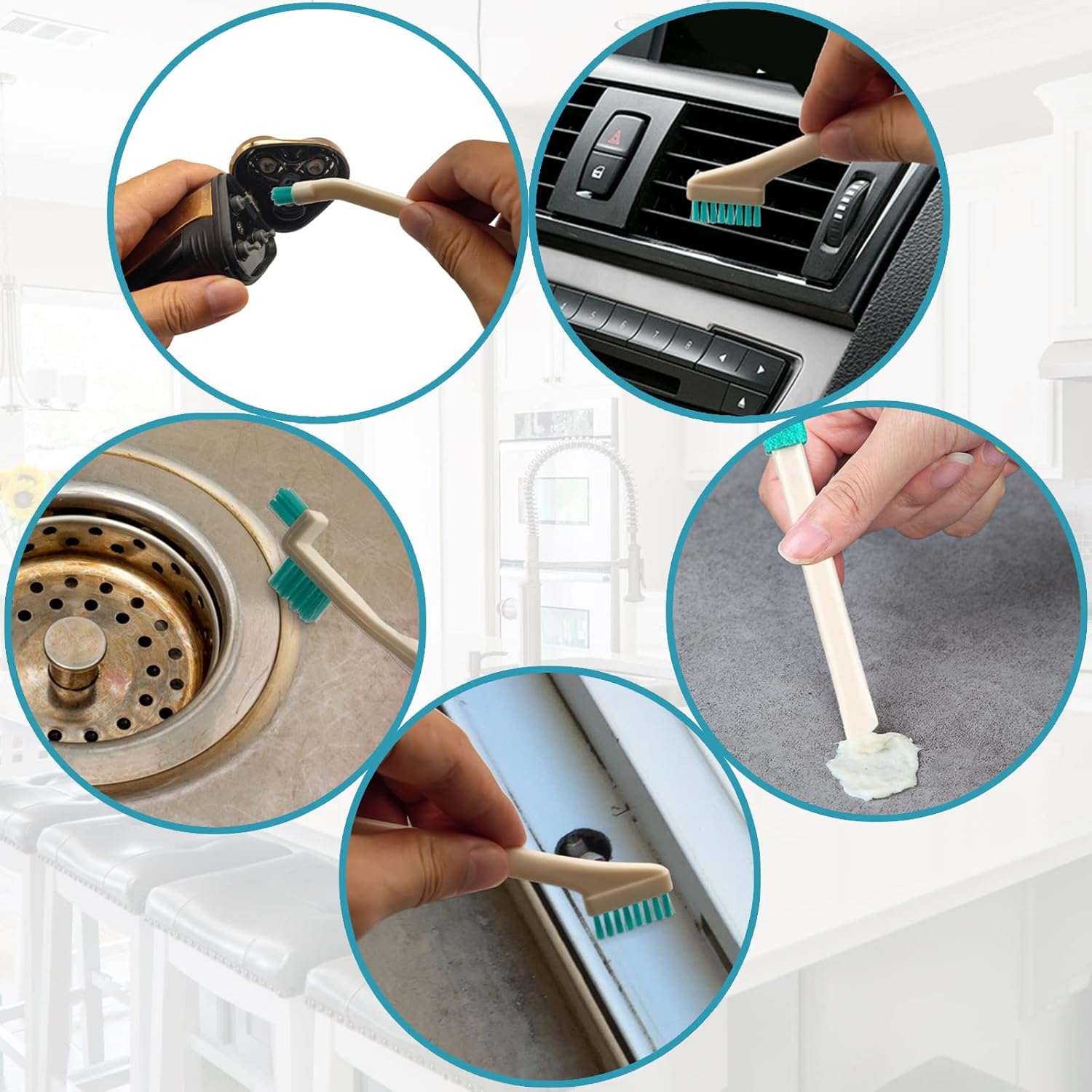 • WIDE APPLICATION: Different cleaning brush design not only can clean the small holes, narrow corner, gap and other small spaces, but also can deeply clean the details of a variety of objects, like keyboards, bottle covers, windows, blinds, door track, air vents and more.