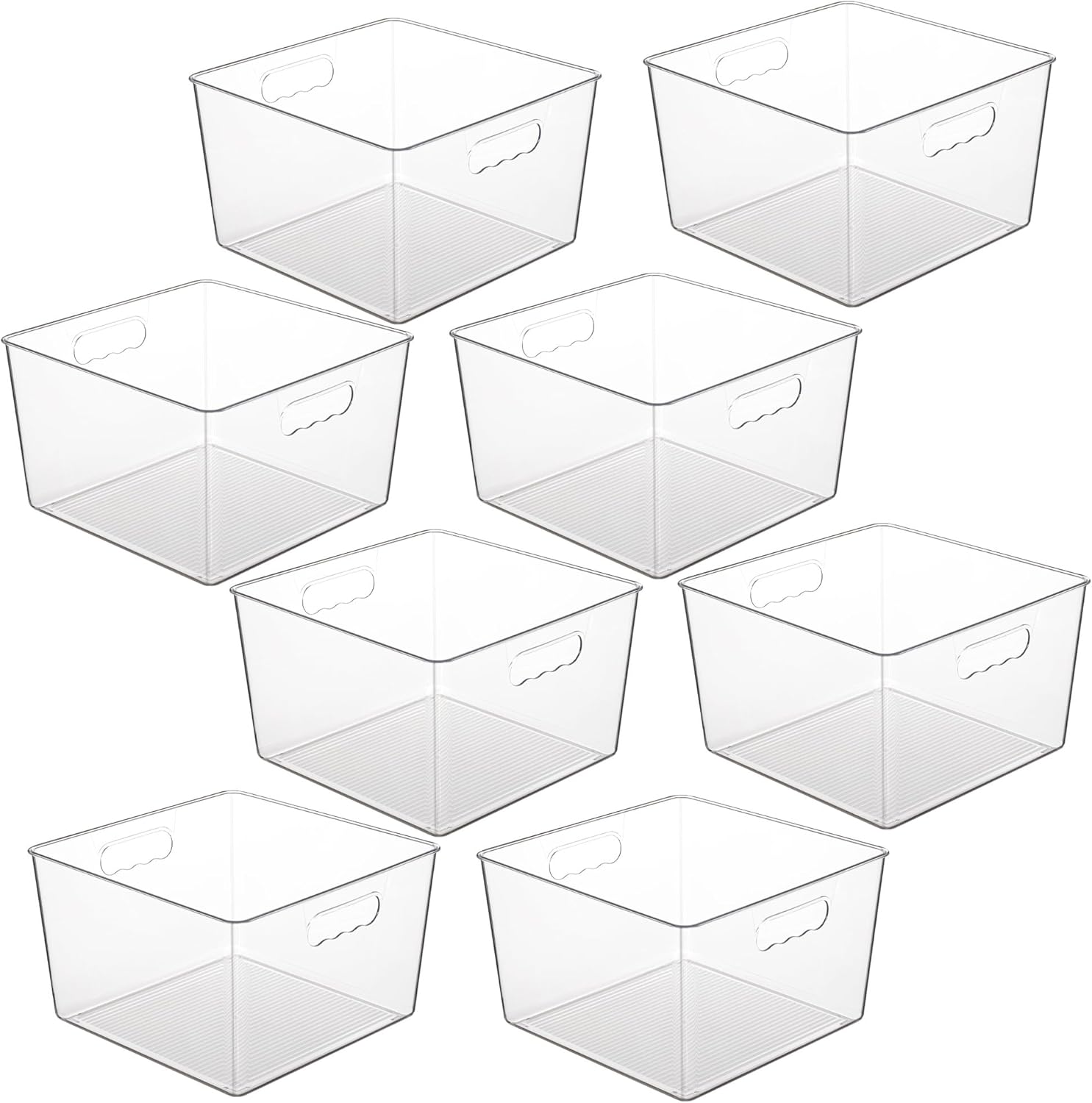 Vtopmart 8 Pack Extra Large Clear Plastic Storage Bins,11x11 Cube Acrylic Organizer Square Containers with Handle for Pantry,Closet,LaundryRoom,Kitchen,Bathroom,UnderSink Organization