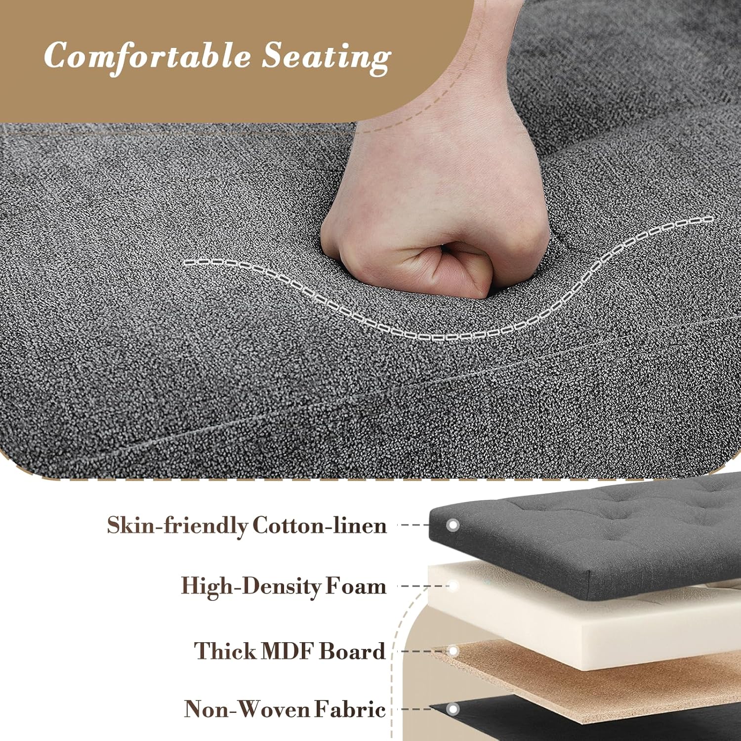 • Comfortable Seating: The large folding footstool bench is made of high-density foam and covered in a linen-look fabric that is soft and skin-friendly, ensuring sitting comfort and breathability.