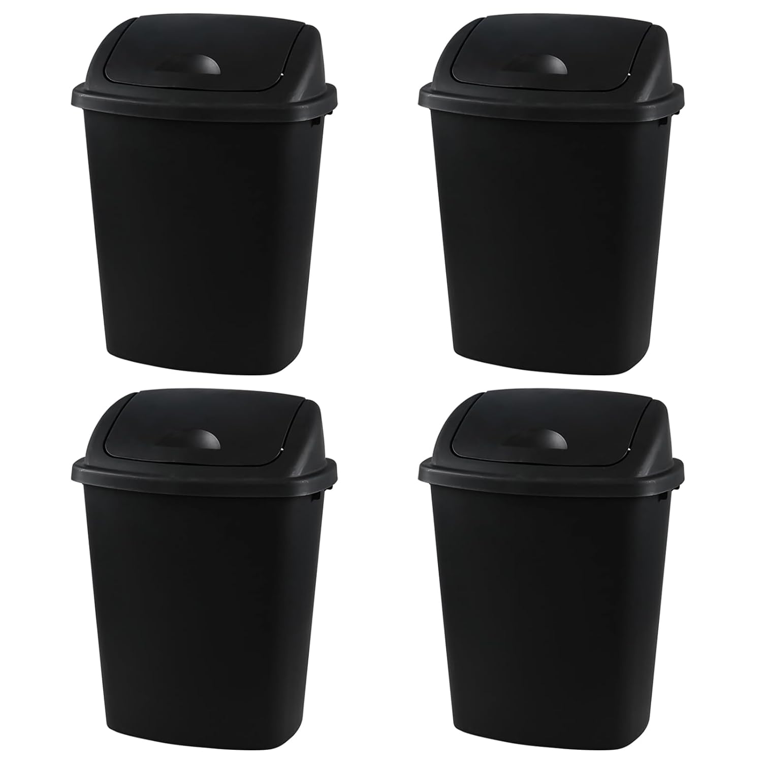 Bringer Black 13 Gallon Kitchen Trash Can with Swing Lid, Plastic Swing Top Tall Garbage Can, 4-Pack