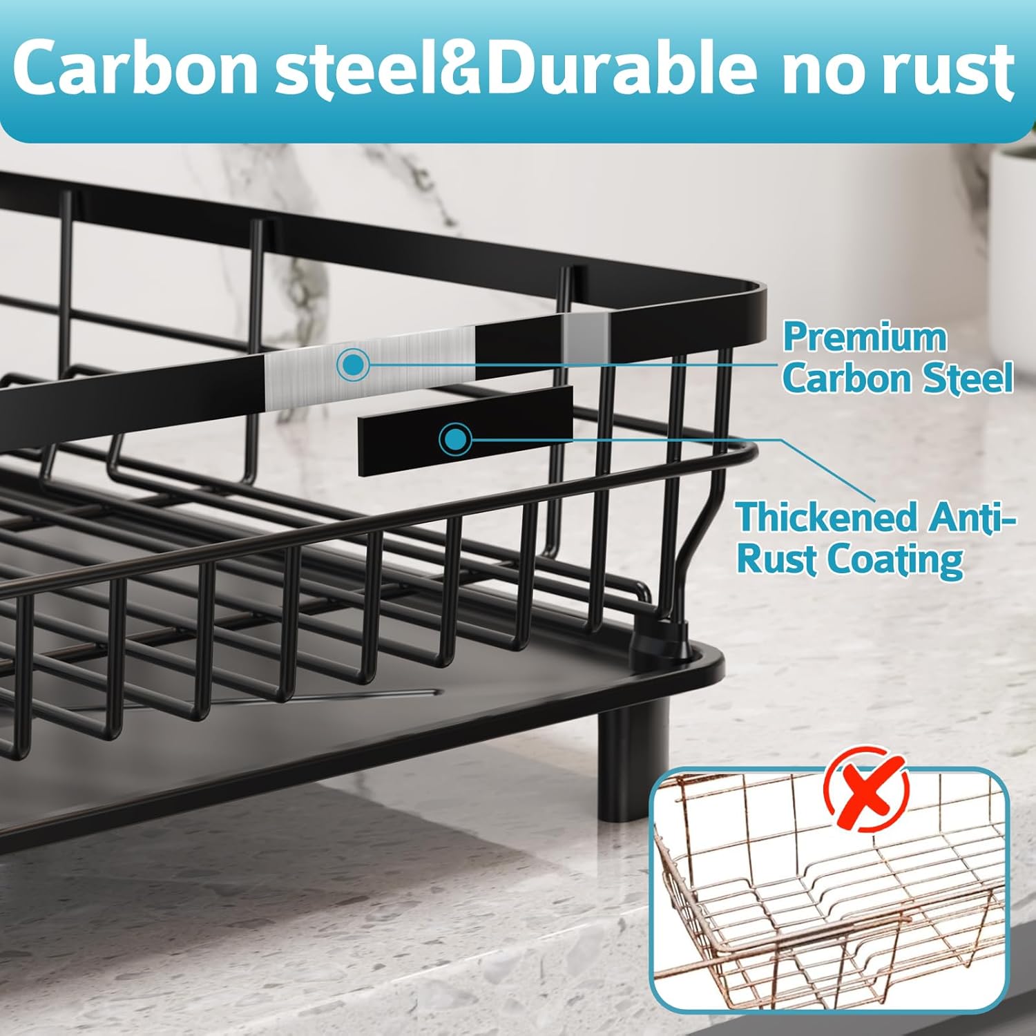 Dish Drying Rack - Space Saving Dish Rack - Dish Racks for Kitchen Counter with Drainboard,Rustproof Dish Drainer with Removable Utensil Holder,Black