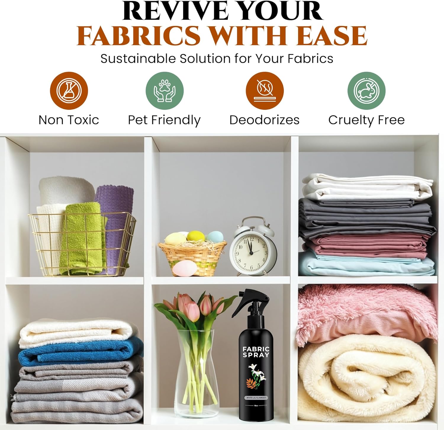 • MADE WITH ESSENTIAL OILS: Our Fabric Refresher Spray is more than just any other Frabric Spray for linens. It is a unique blend of essential oils that help you relax and clear your head.
