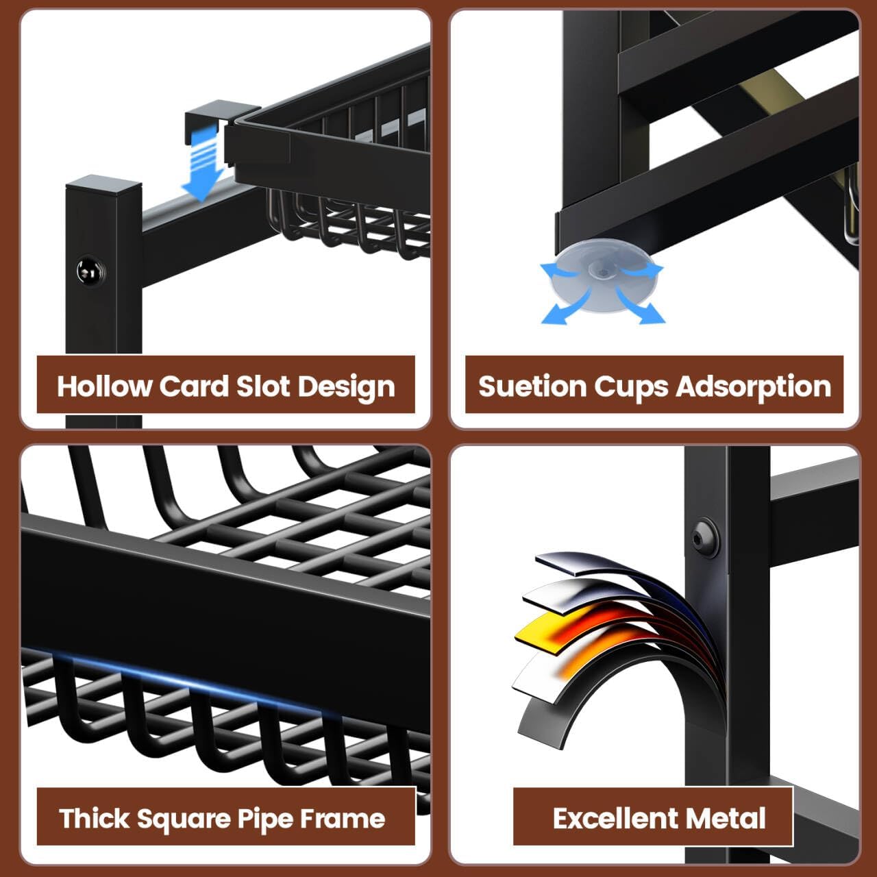 3-Tier Over Sink Dish Draining Rack, Adjustable Width and Height, with Phone Holder, Cup Holder, Knife and Chopstick Holder, Cutting Board Rack, Space-Saving Rack