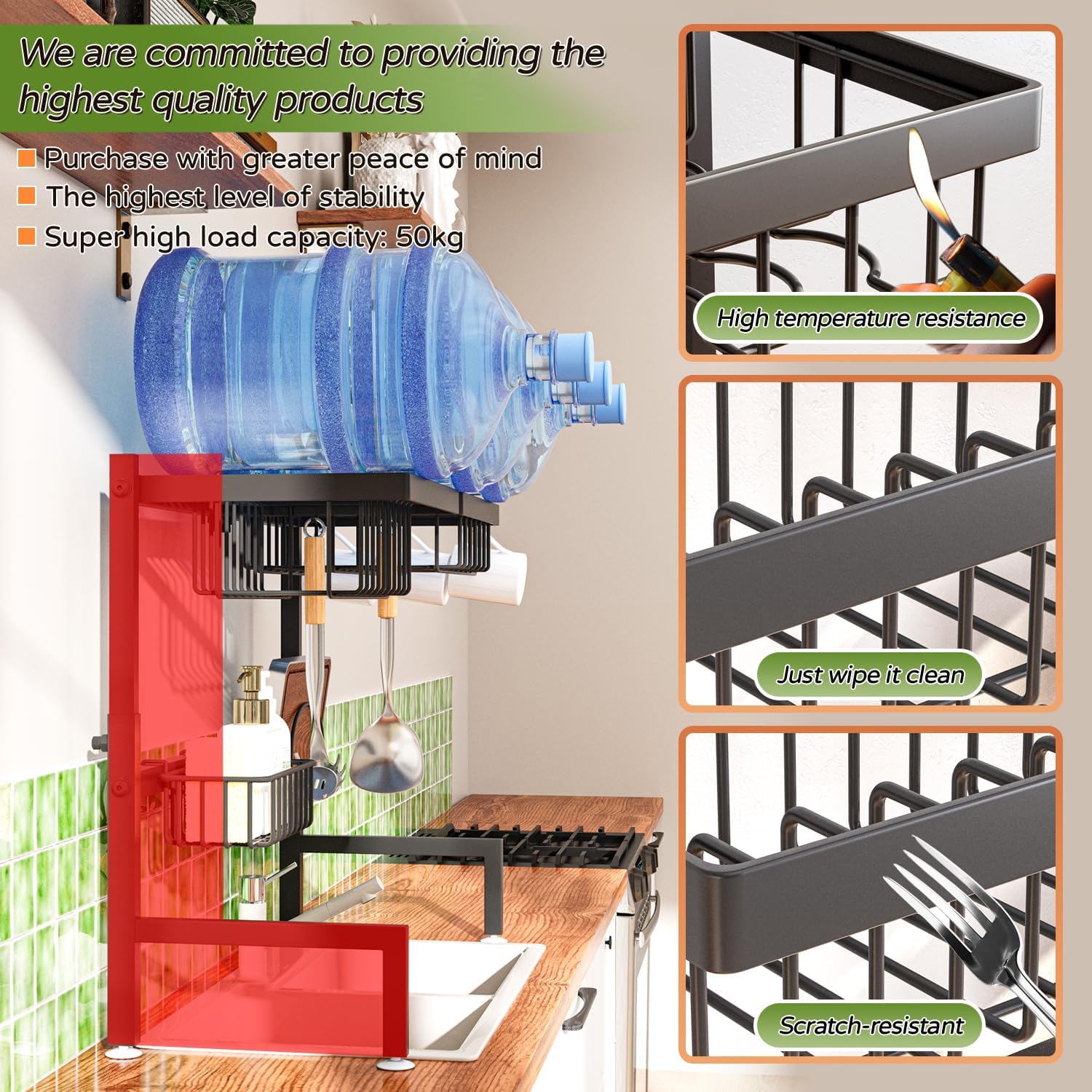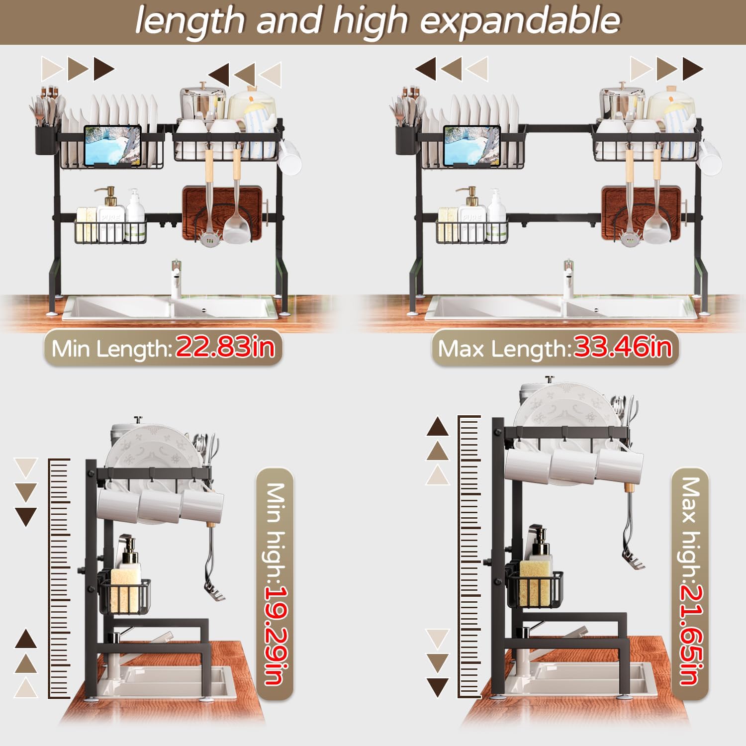 • 【Expandable Design】: Adjustable height (19" - 22" H) and length (24" - 35.5" L) to fit most sinks.