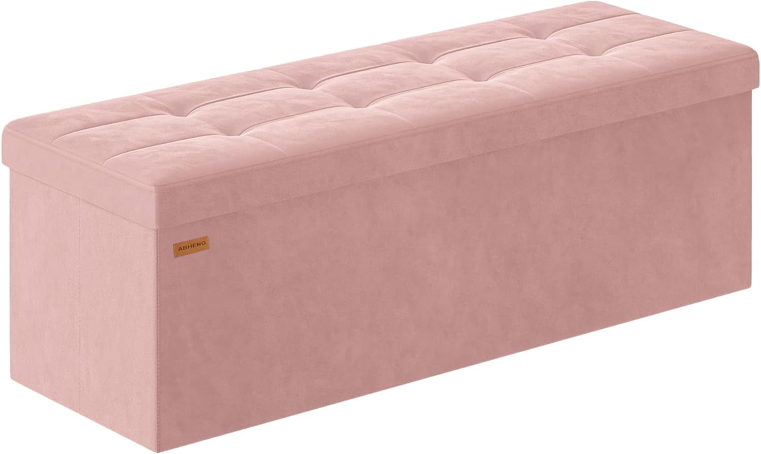 Folding Storage Ottoman, Velvet Storage Bench, Footrest, Removable Divider, for Living Room, Bedroom, 15 x 43 x 15 Inches, 660 lb Load Capacity, Jelly Pink UASND02P