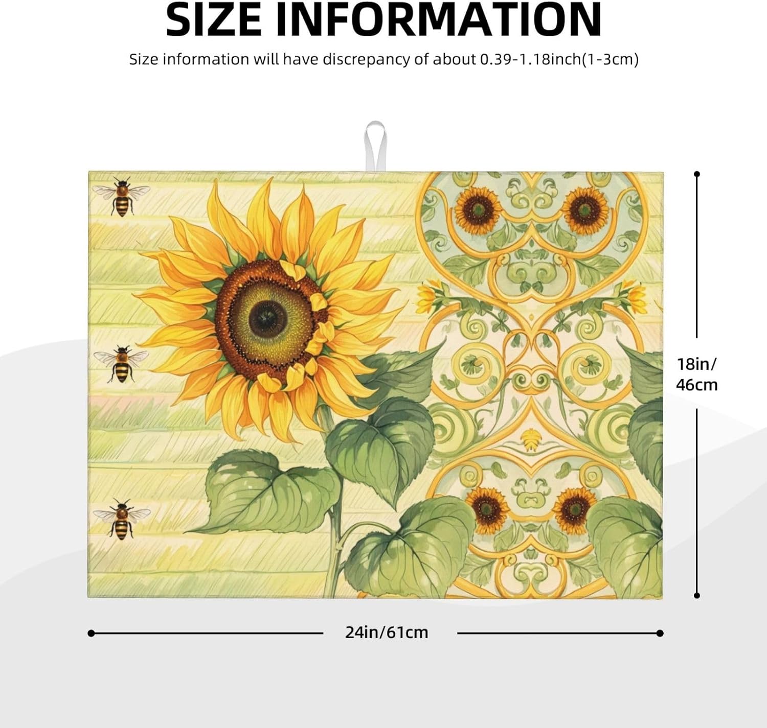 Sunflower Bee Dish Drying Mat Highly Absorbent Double-Sided Microfiber with Hanging Loop Reversible Drain Dish Rack Mat Drain Mat Suitable for Kitchen Countertop Coffee Bar 18 x 24 Inch