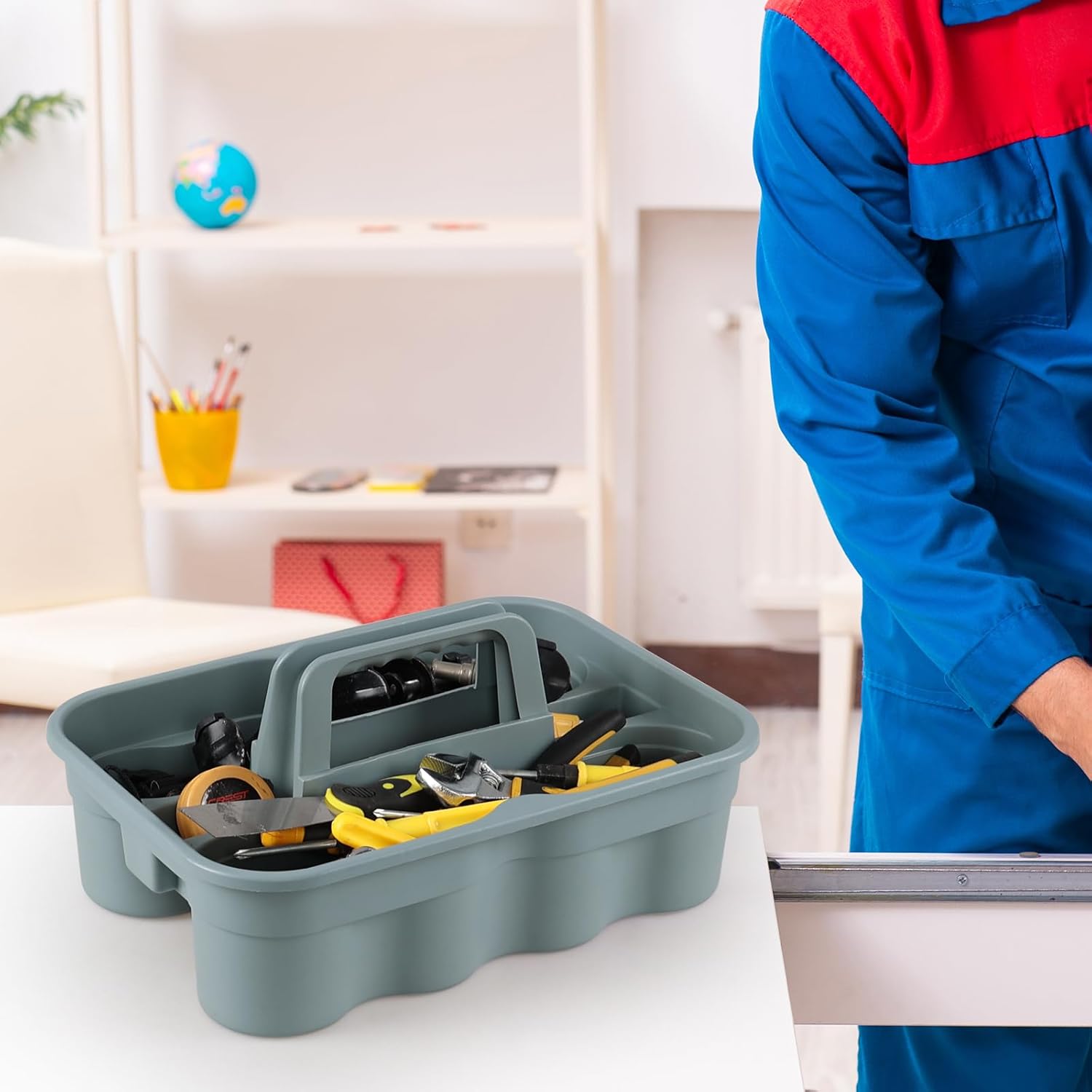 4 Packs Plastic Cleaning Caddy, 2 Compartment Cleaning Tool Caddy with Handle, Grey