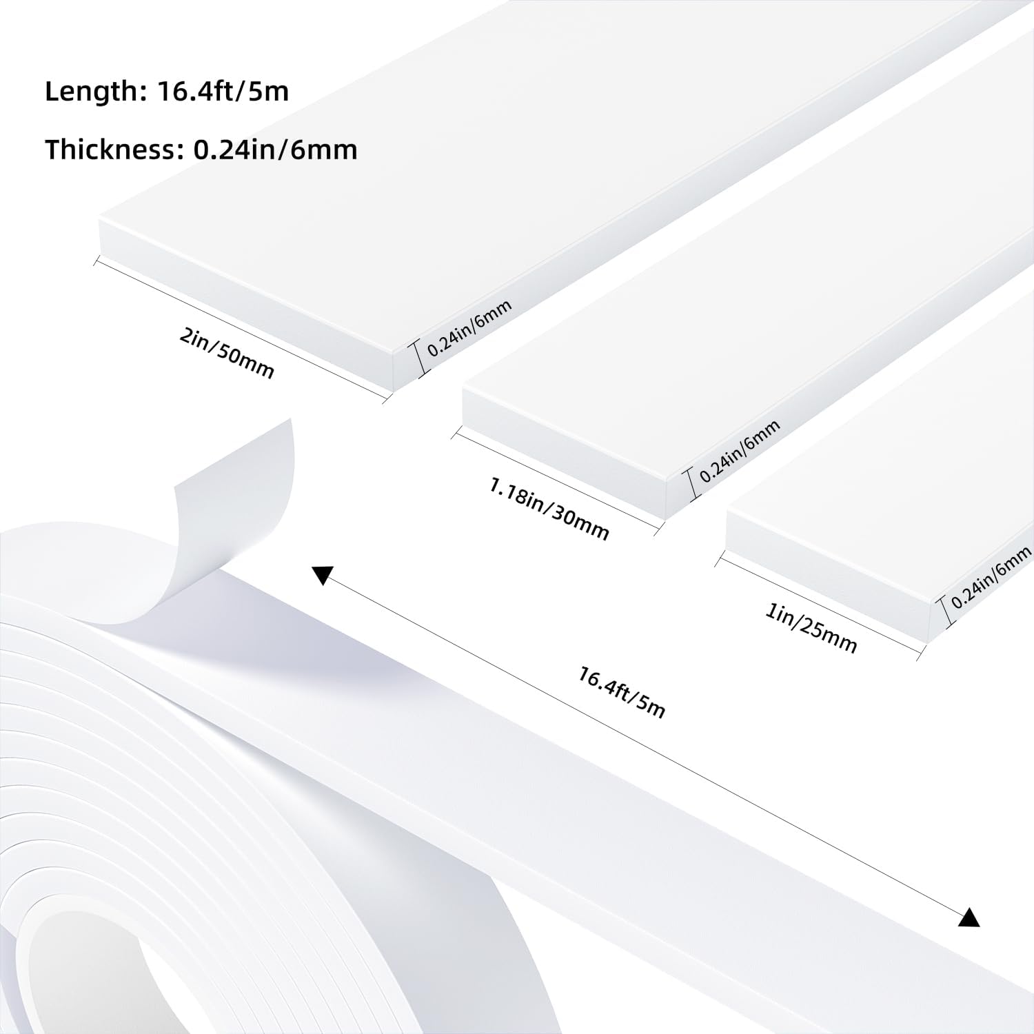 • 【Product Size】1 roll of 1.18" W x 1/4" T x 16.4' L foam tape.