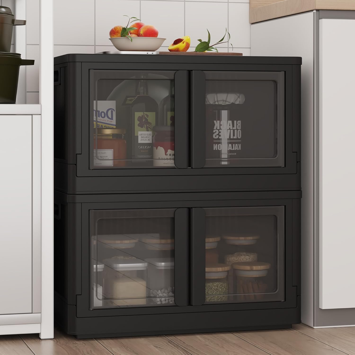 FLEXIMOUNTS 152 QT Stackable Storage Bins With Lids, Collapsible Plastic Storage Bins, Closet Organizers and Containers with Doors and Built-in Wheels For Home, 2 Pack Cubes, Milky White