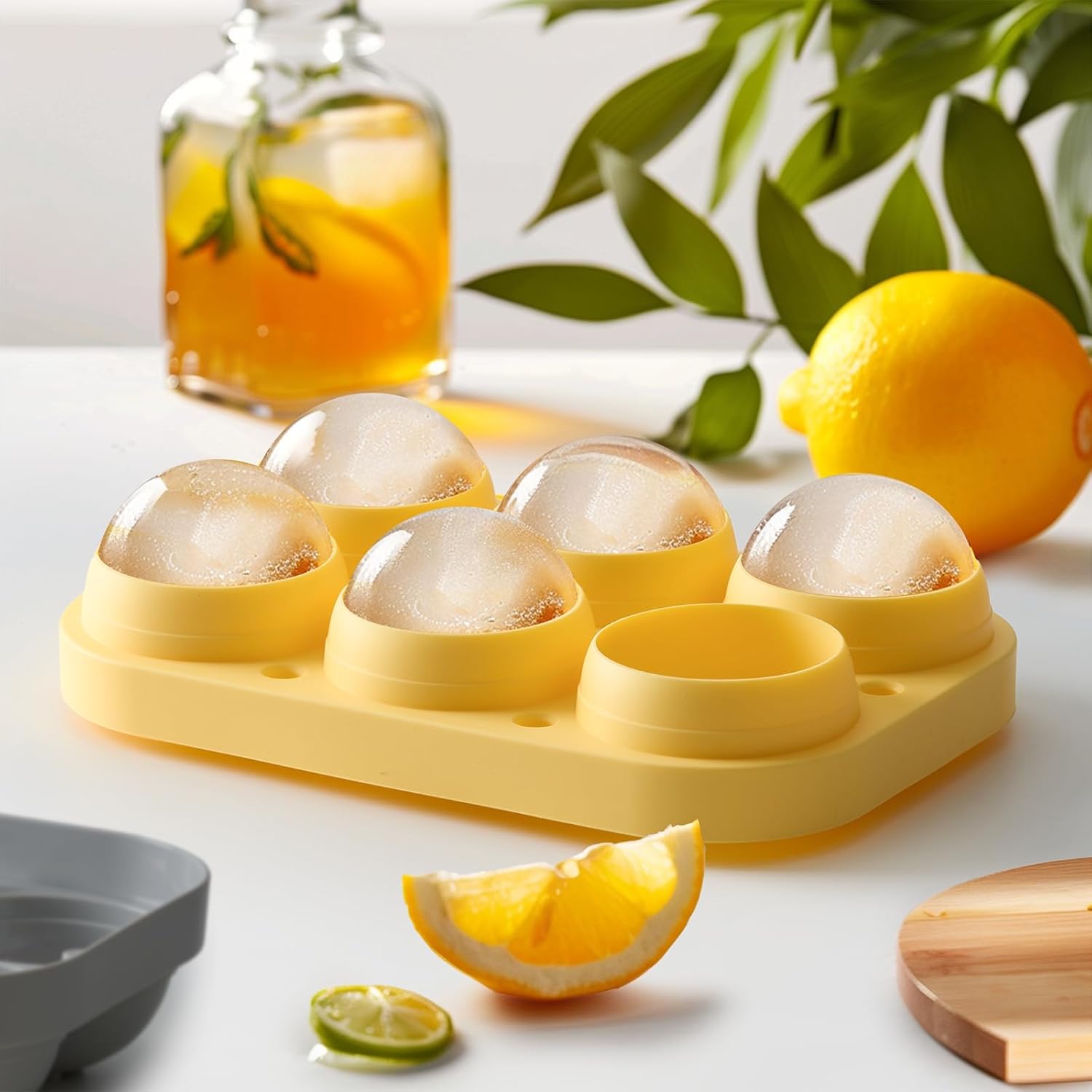 2.5inch Spherical Ice Ball Tray For Whiskey, Big Ice Freezer Mold for Cocktails,Easy Fill In & Release Ice Cube Mold, Durable &Reusable Spherical Ice Maker (Sunshine)