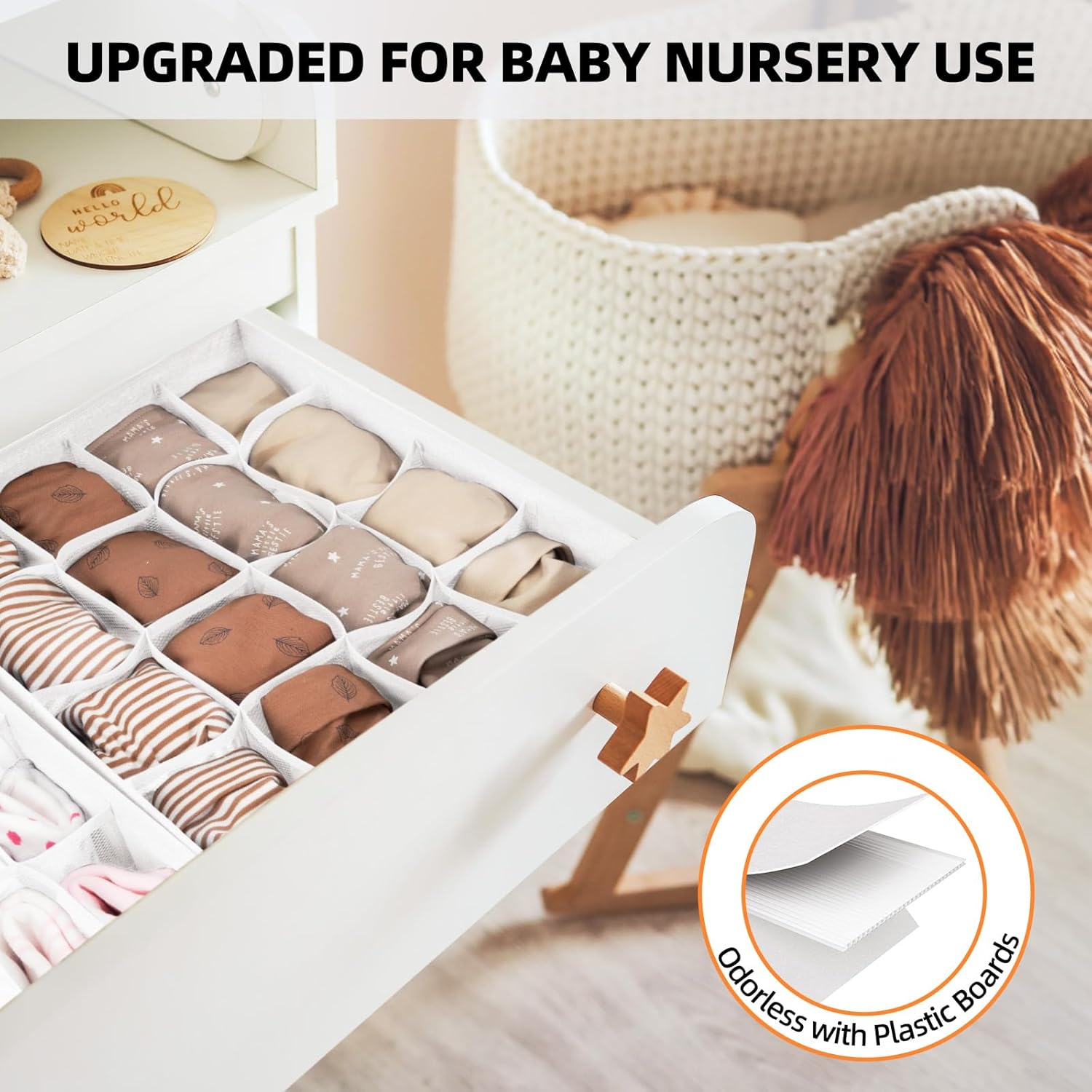 • 【SOLVE YOUR QUALITY CONCERNS】Maybe you noticed a strange smell in your drawers? Many organizer bins are made of cardboard, causing odors. Our Criusia drawer organizers use durable plastic boards wrapped in cationic cloth, making them 10 times more durable than non-woven fabric. They are odorless, ideal for baby nursery organization, and washable for a longer lifespan.