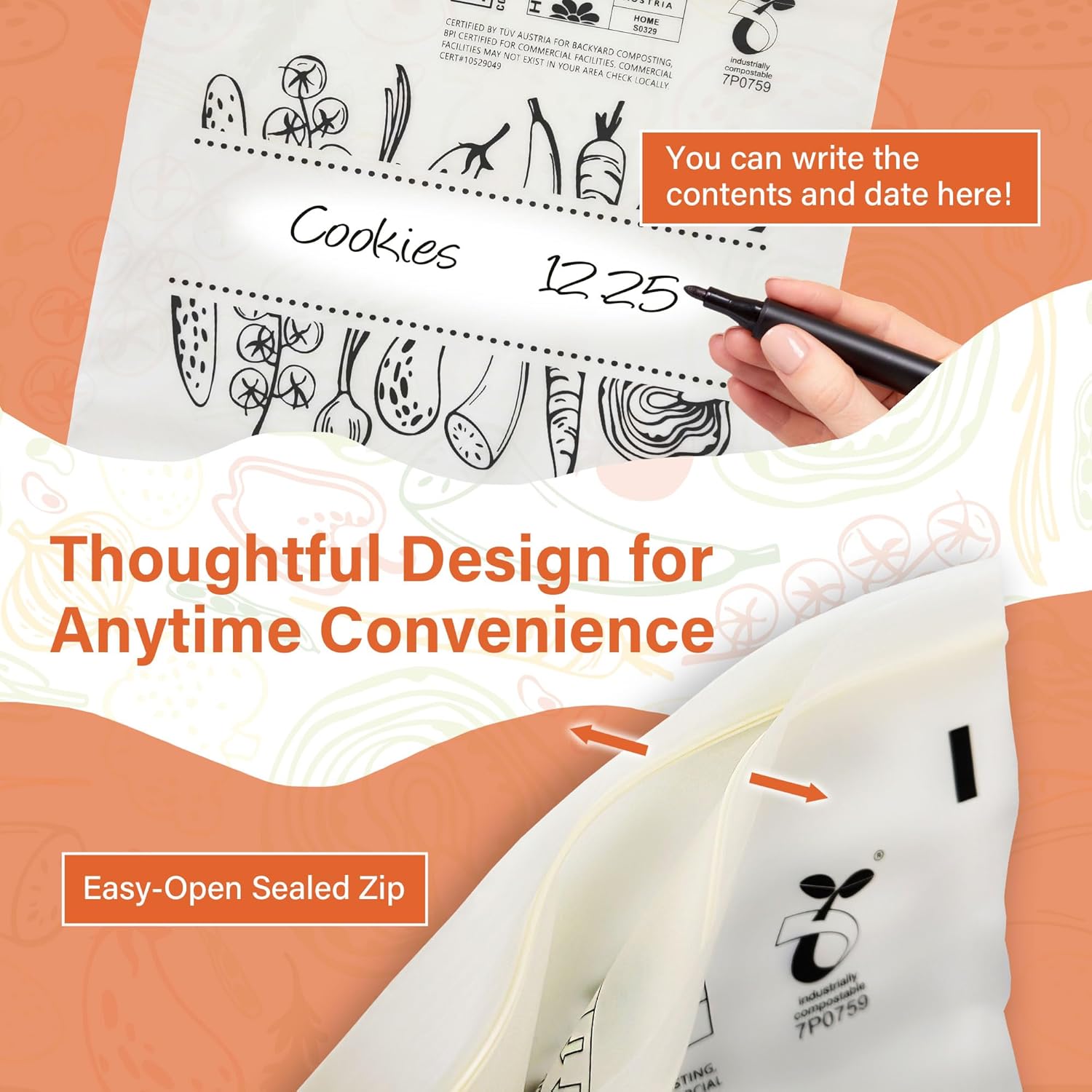 • 💕【Durable, Eco-friendly, and Safe】The food storage bags lock in freshness with a secure, leak-proof seal. Compostable, BPA-free, and non-toxic, they’re ideal for daily use and freezer storage. Easy to use and tough enough for a variety of foods, they provide a reliable, eco-conscious solution for all your storage needs.