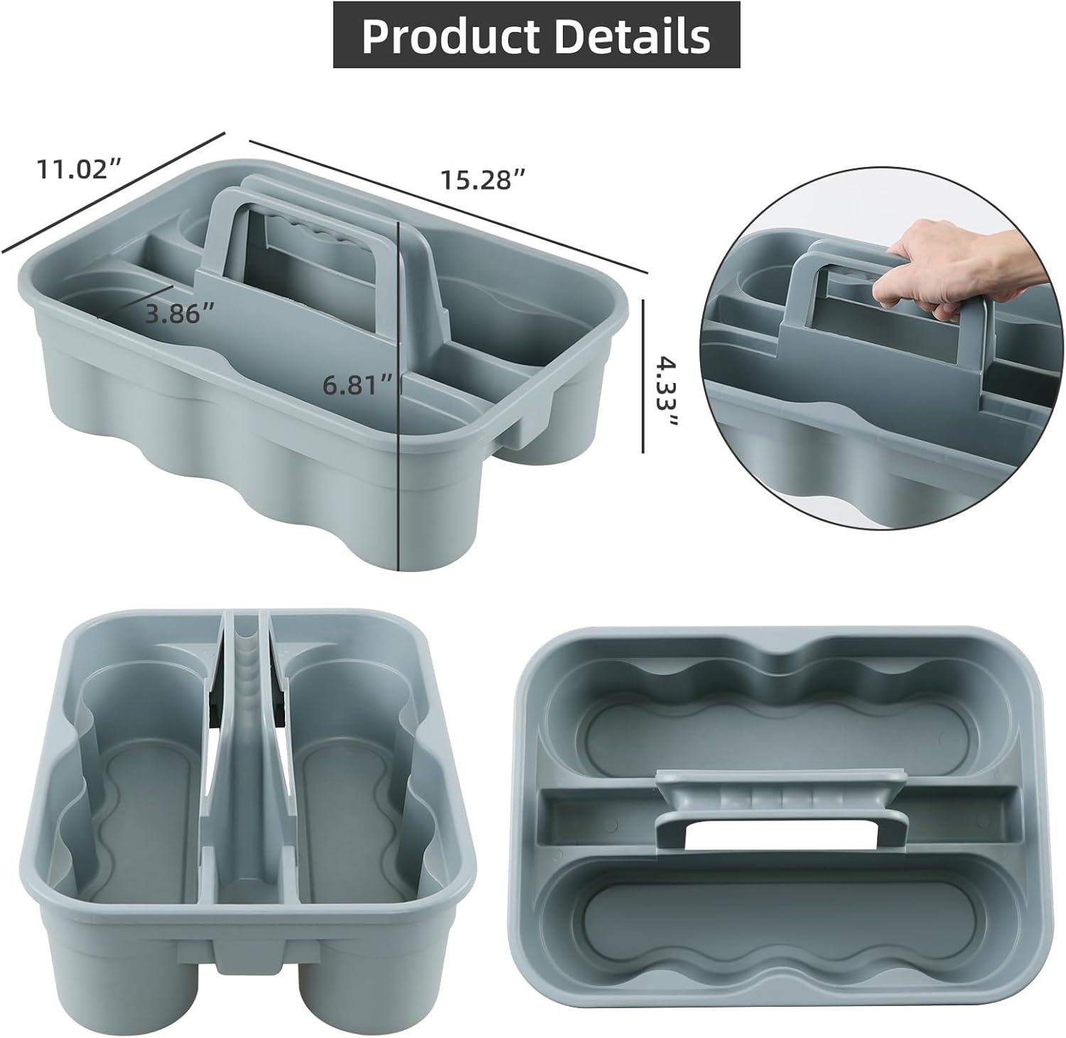 • Cleaning supplies caddy measures size of 15.28 in (L) x 11.02 in (W) x 6.81 in (H)