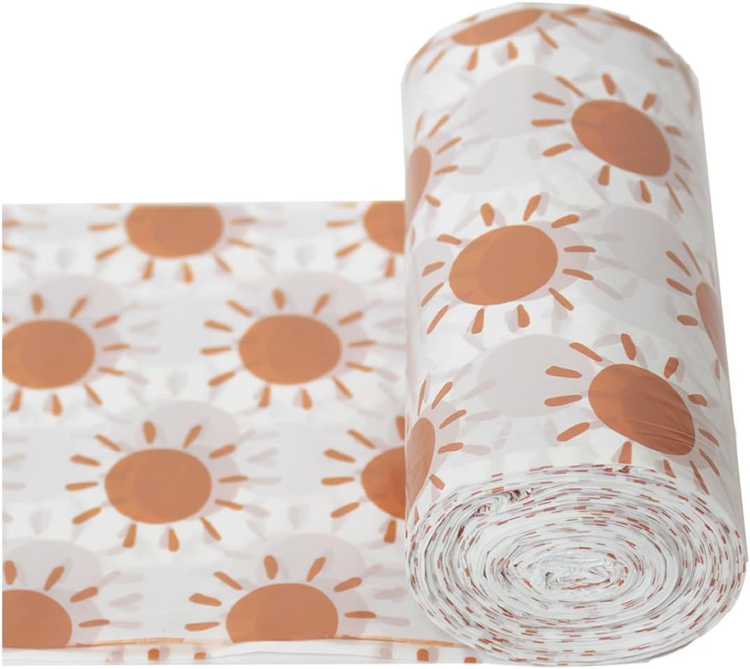 • 𝐒𝐓𝐘𝐋𝐈𝐒𝐇 & 𝐏𝐑𝐀𝐂𝐓𝐈𝐂𝐀𝐋 𝐃𝐄𝐒𝐈𝐆𝐍: **Decorative trash Liners ONLY, the trash bin is NOT included** Our sunshine pattern bathroom garbage bags not only provide an elegant and modern touch to your home but also serve a functional purpose. These bathroom trash bags effortlessly combine a minimalist design with versatile use, making them great for any room in your home.