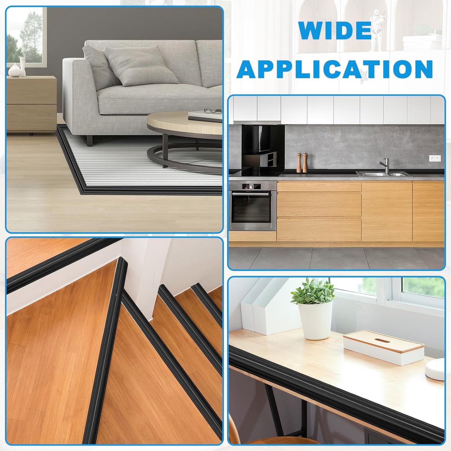 • Flexible Design: The corner molding trim can be adjusted to different angles, allowing for inward or outward flipping of 0-315 degrees as well as flat installation. As a result, it can serve various functional needs such as wall corner protection, sealing strip, floor transition strip, and table corner protection.