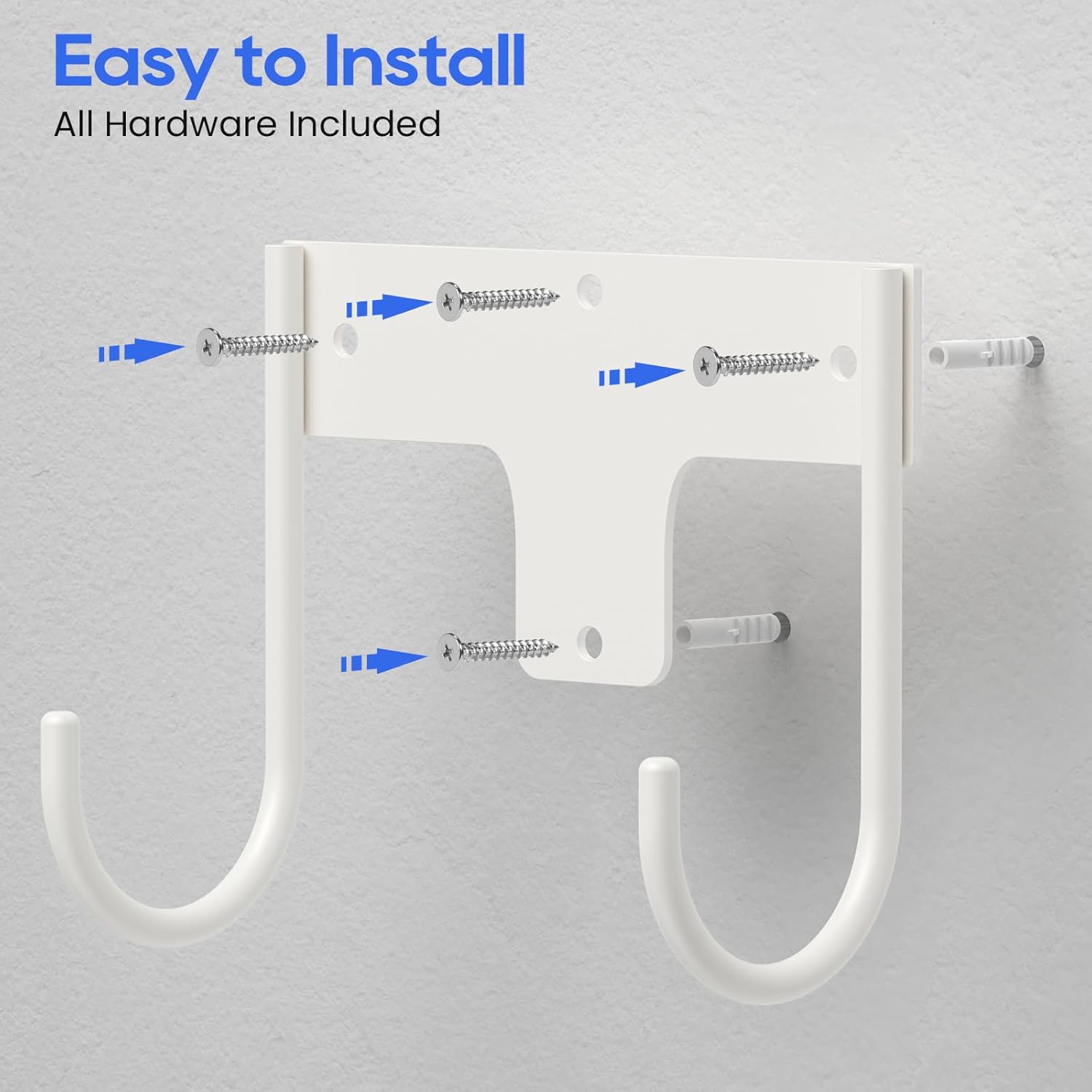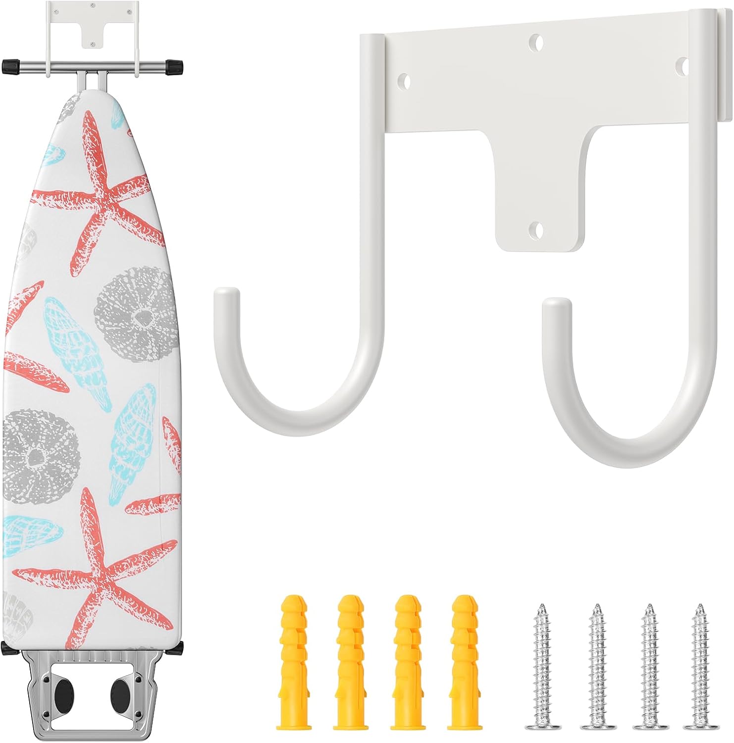 • EASY TO INSTALL: Just hang the detachable hooks on the holder and mount the whole ironing board holder on the wall. Hardware is included; installation takes only 5 minutes.