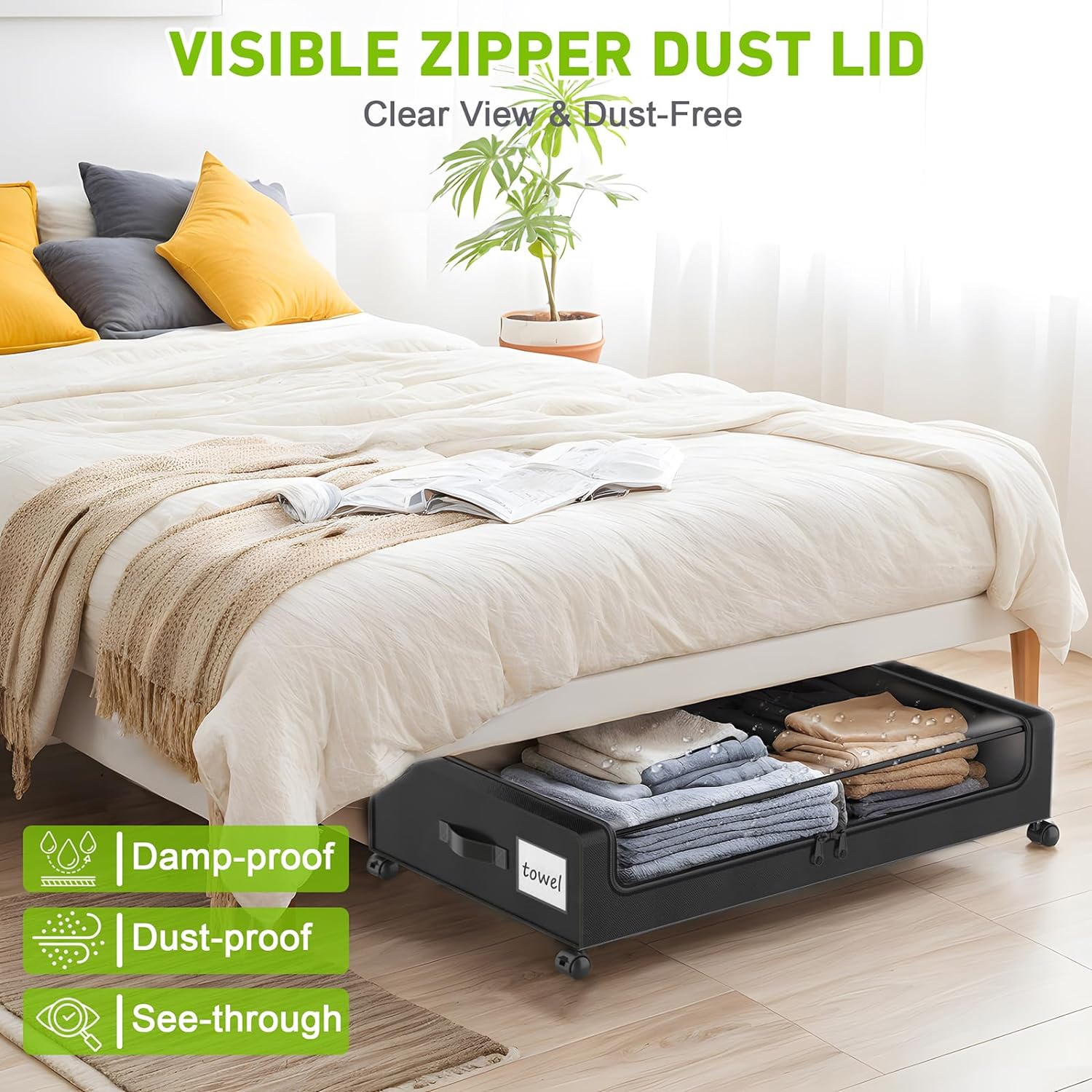 • 🏷️【Label & Clear Lid Design】The under-bed storage bins with transparent LIDS and labels make it easy to quickly identify your locker contents without having to open the bin, preventing misplacement and eliminating the hassle of searching for items. The under the bed storage box adopts double zipper design and high-quality material to thoroughly keep out moisture, oil stains, dust and dirty things, ensuring that your items are clean and no longer messy.