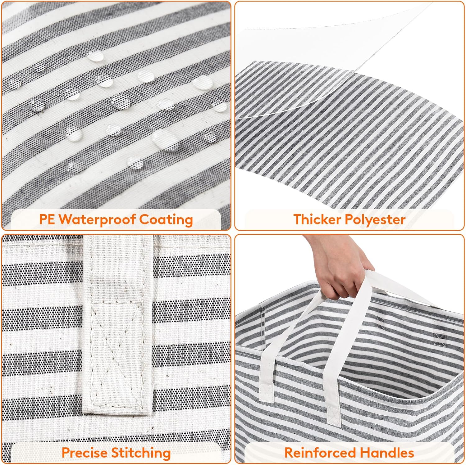 • Quality Material: Made from thick polyester and premium cotton, the waterproof laundry hamper has a PE waterproof coating on the interior, keeping stored items dry. To clean, simply wipe with a wet cloth
