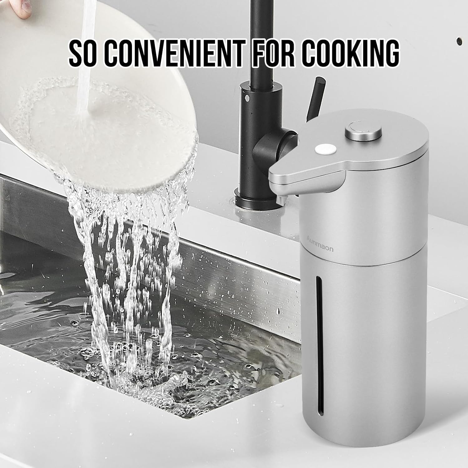 Aunmaon Automatic Soap Dispenser Touchless,Upgrade Adjustable Volume for Thick and Thin Liquid Battery Hand Soap Dispenser,Dish Soap Dispenser Kitchen Bathroom,Auto Soap Dispenser Hands Free Silver