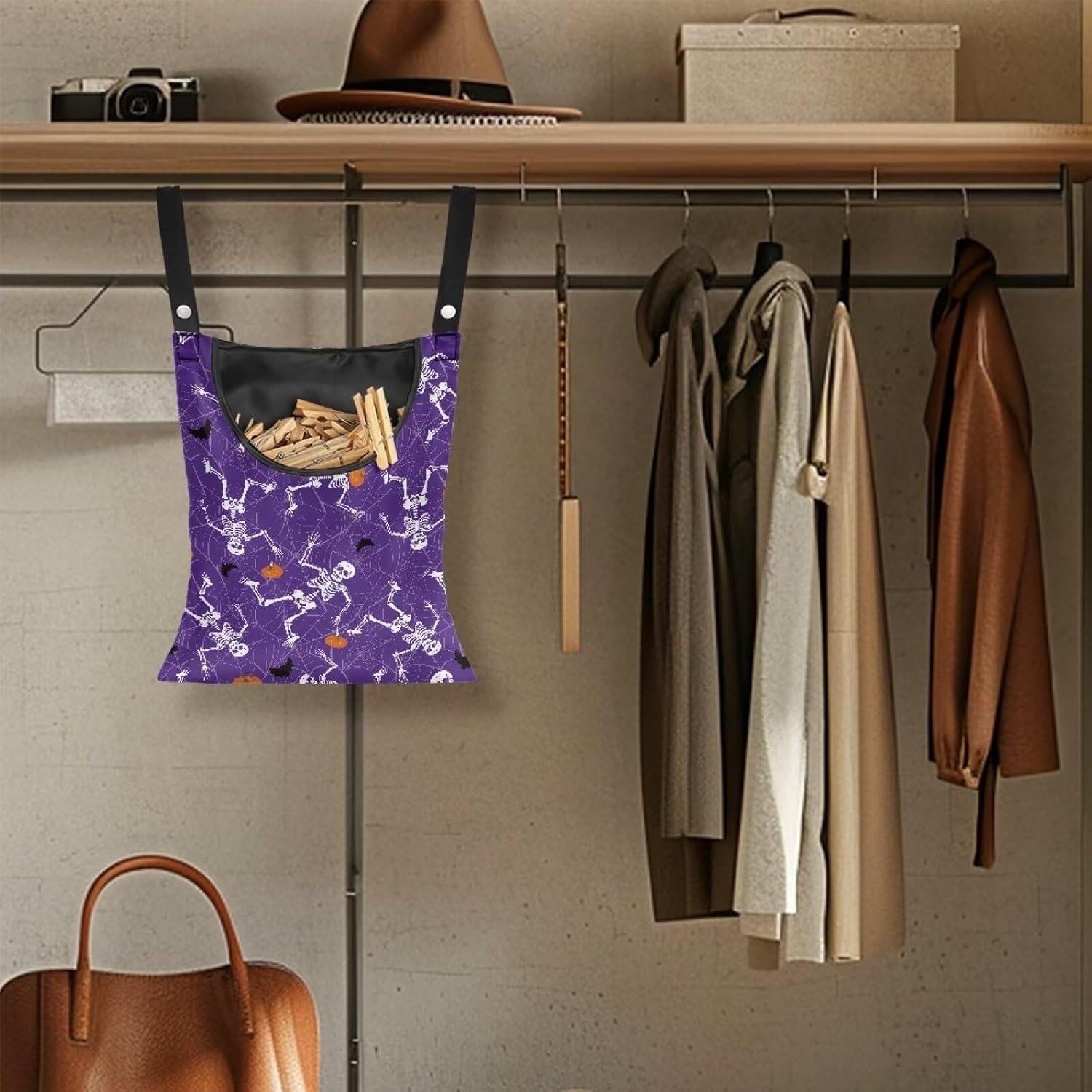• 【Large Opening for Convenient Use】the clothes pins holder is designed with a large opening, allowing you to easily access the clothespins (not included) inside to help you deal with heavy sweaters, jackets, jeans and other clothes.