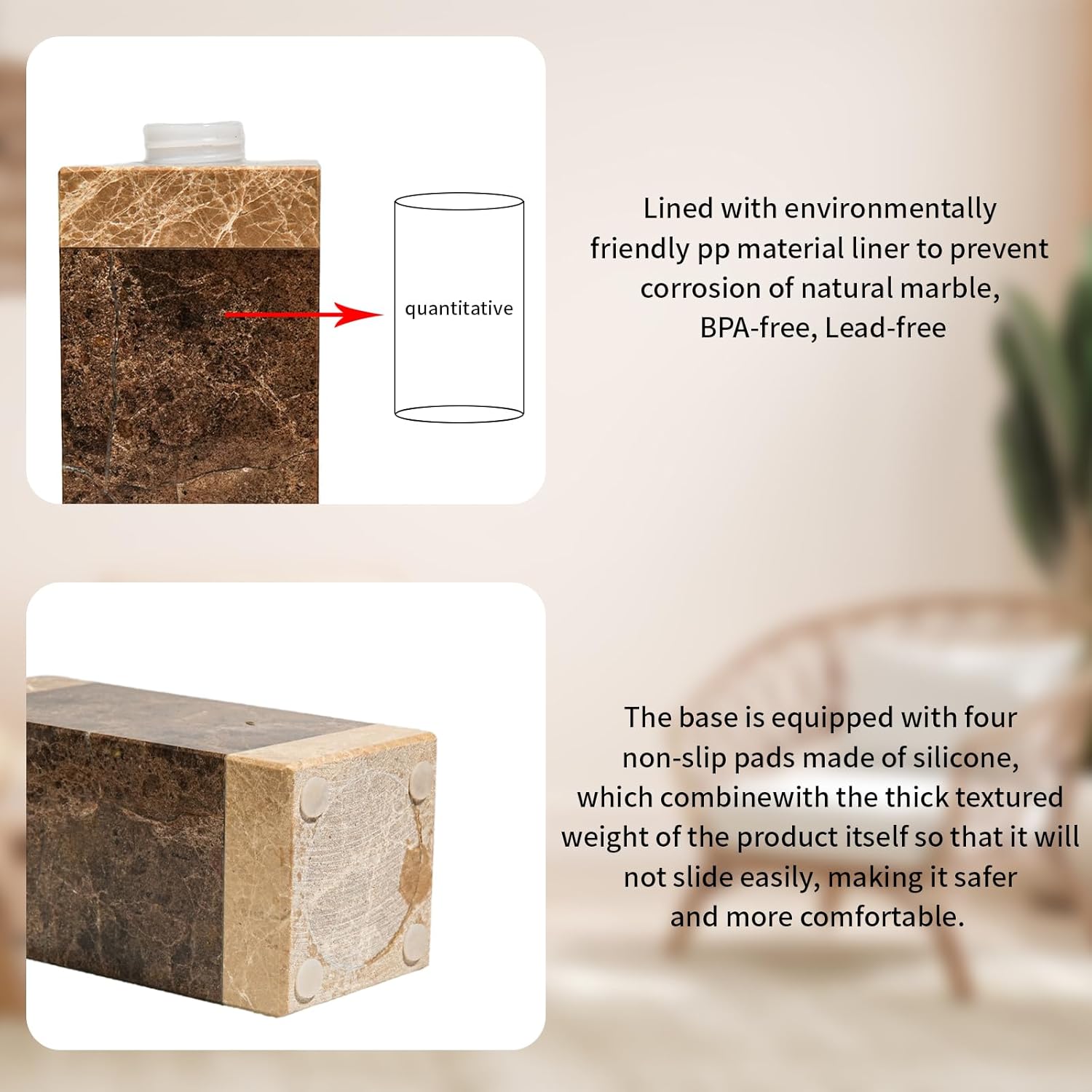 • 【Material】: Crafted from natural marble using a unique splicing process, our soap dispenser exudes timeless elegance while offering durability that withstands everyday use
