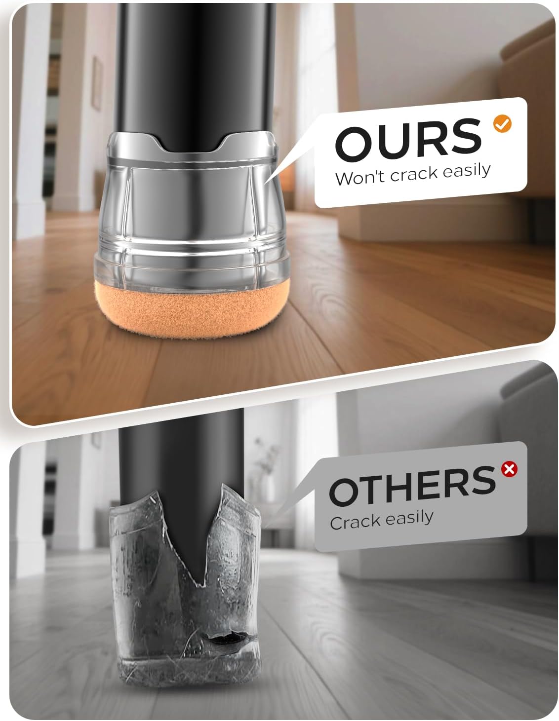 • Not Split & Falling off-Easily Crafted from high-quality TPE, our chair leg floor protectors feature tightly pressed felt and silicone. Rubber chair leg floor protectors in transparent/black options discreetly blend with furniture legs. Designed to securely grip and snugly fit onto chair legs, withstands 200lbs+ weight without splitting or sliding. Quiet gliding reduces 80% noise.
