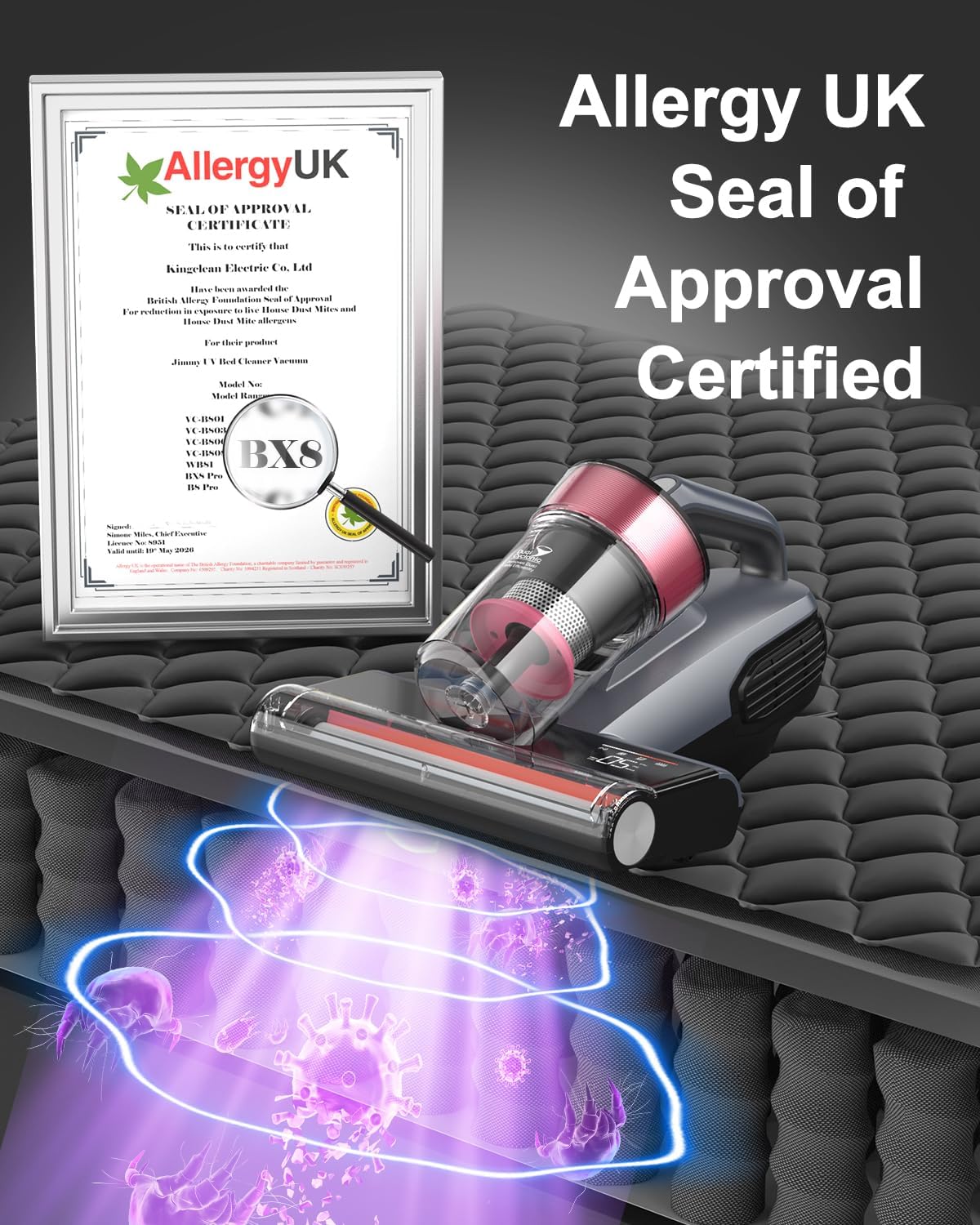 Jimmy Mattress Vacuum Cleaner, Bed Vacuum Cleaner with UV Sanitizing & HEPA Filter & Ultrasonic, Hot Wind and Air Purification, 15Kpa 500W Handheld Vacuums for Bed, Couch, Sofa, Crib (BX8-Corded)